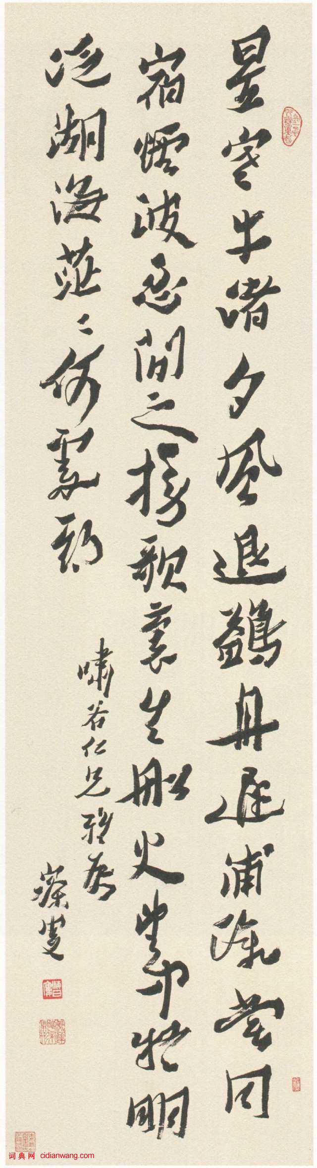 沈曾植《行草書孟浩然夜泊牛渚詩軸》