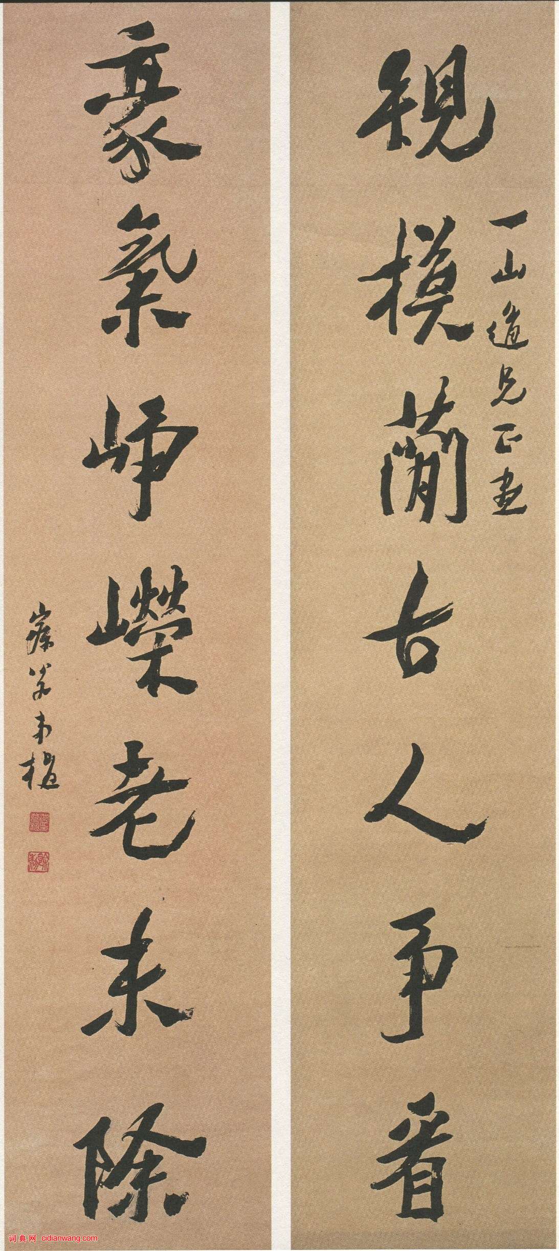 沈曾植《行書規模豪氣七言聯》紙本行書 172×27cm×2 嘉興博物館藏