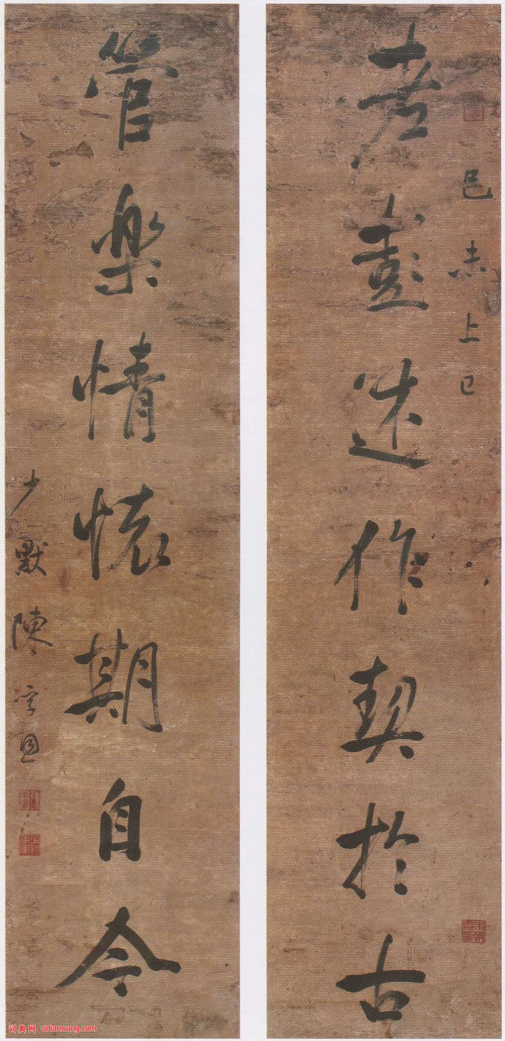 陳孚恩《行書老彭管樂七言聯》紙本行書 124×29 cm×2 淮安市博物館藏