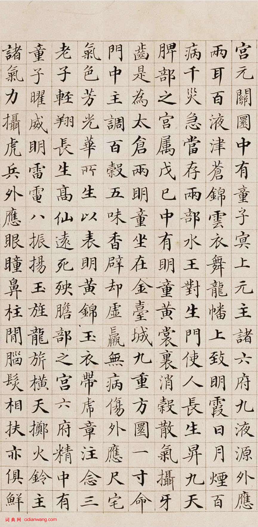 書法欣賞魏晉書法唐朝書法宋朝書法元朝書法明朝書法清朝書法近現代書法字典網>> 歷代書法>> 清朝>> 郭尚先《楷書黃庭內景經卷》(3)正文 郭尚先《楷書黃庭內景經卷》(3)作者:郭尚先 書體:楷書 首 頁 上一頁 1 2 3 4 5 6 7 8 下一頁 尾 頁郭尚先的相關書法作品:郭尚先《行書橫幅》 郭尚先《楷書黃庭內景經卷》 相關文章:劉墉《行書遠景樓記軸》 (行書)劉墉《行書遠景樓記軸》紙本行書 165×56.1cm 遼寧省博物館藏釋文: ...沈周《行書落花詩扇》 (行書)沈周《行書落花詩扇》 上海博物館藏釋文: 富逞濃華滿樹,香飄瓣落樹還貧。紅芳既...秦詔版文 (篆體)釋文:廿六年皇帝盡併兼天下諸侯黔首大安立號為皇帝乃詔丞相狀綰法度量則不壹歉疑者皆...北魏《張黑女墓誌》 (楷書)《張黑女墓誌》全稱《魏故南陽太守張玄墓誌》,有稱《張玄墓誌》。張玄字黑女,因避清...李祁·書札 (行書)【釋文】此宣公居江淮督府書也。公方弱冠。已有經綸天下之志。觀於此書可見矣。宋之中...趙之琛篆書《摹古軸》 (篆書)趙之琛《篆書摹古軸》紙本篆書 131.5×60.5cm 南京博物院藏釋文:唯三...趙孟頫行書《楞嚴經》 (行書)趙孟頫楞嚴經拓本,鄭親王藏。楞嚴經釋文:“妙湛總持不動尊。首楞嚴王世稀有。消我億...黃庭堅行書《小子相帖》 (行書)黃庭堅行書小子相帖 紙本 縱31.3厘米 橫33.3厘米上海博物館藏此帖行書七行...趙孟頫《趵突泉詩》 (行書)趙孟頫《趵突泉詩》,紙本,行書,縱33.1cm,橫83.3cm。台北故宮博物院藏...梅植之行書《錄陶潛詩軸》 (行書)梅植之《錄陶潛詩軸》紙本行書 136.9×28.8cm 揚州博物館藏。