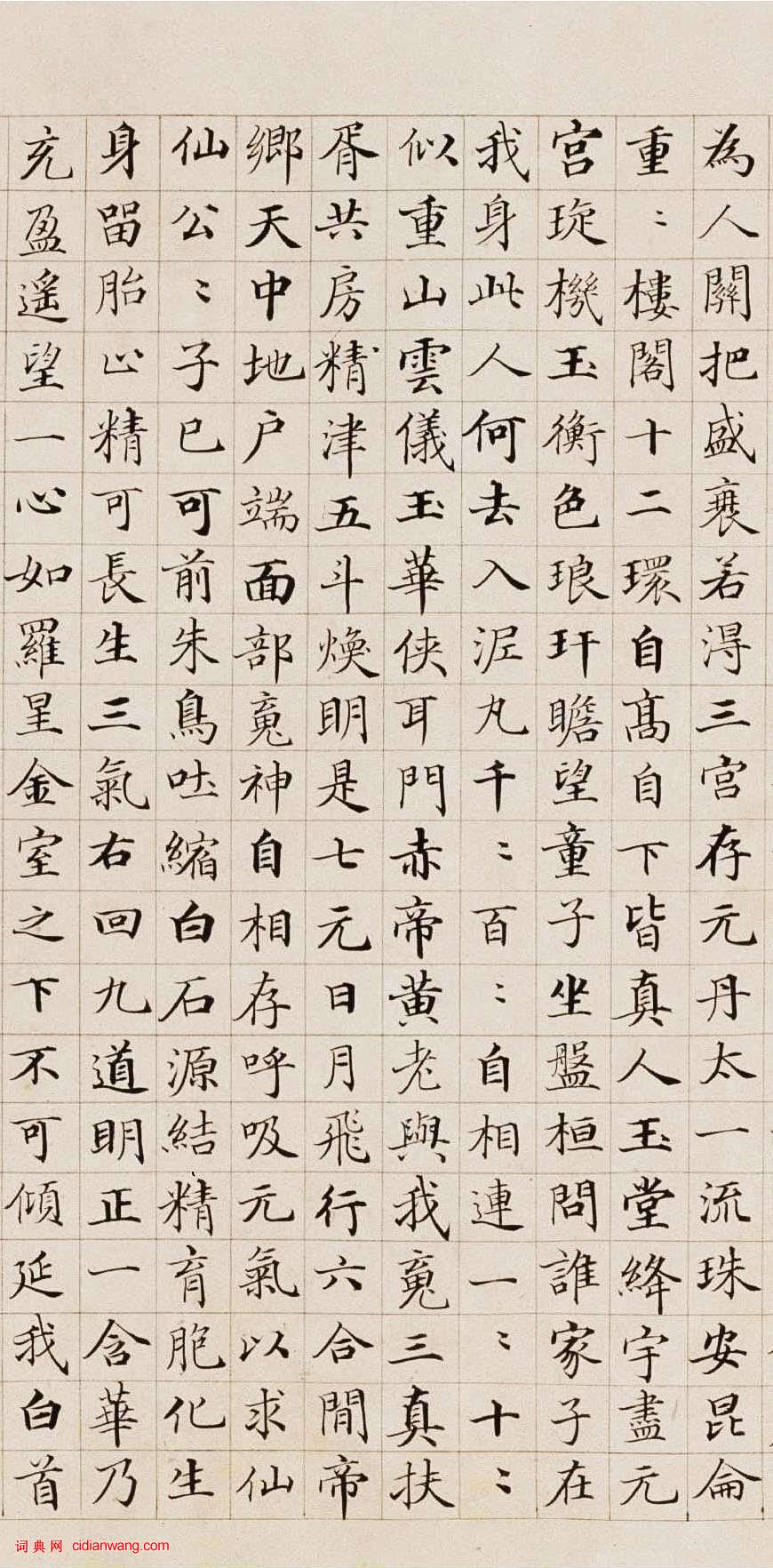 書法欣賞魏晉書法唐朝書法宋朝書法元朝書法明朝書法清朝書法近現代書法字典網>> 歷代書法>> 清朝>> 郭尚先《楷書黃庭內景經卷》(4)正文 郭尚先《楷書黃庭內景經卷》(4)作者:郭尚先 書體:楷書 首 頁 上一頁 1 2 3 4 5 6 7 8 下一頁 尾 頁郭尚先的相關書法作品:郭尚先《行書橫幅》 郭尚先《楷書黃庭內景經卷》 相關文章:北魏《姚伯多造像記》 (楷書)《姚伯多造像記》亦稱《姚文遷造像碑》,《姚伯多兄弟造成石文像》。 姚伯多造像碑是...張瑞圖行書論書卷 (行書)張瑞圖行書論書卷 綾本 縱25厘米 橫274厘米 安徽省博物館藏【資料來源】《...今釋行書《再承朽翁言笑詩扇》 (行書)今釋《行書再承朽翁言笑詩扇》金箋行書 16.1×50.7cm 1679年 上海...“江西才子”曾棨《贈王孟安詞》 (行書)聽過“江南四大才子”,“江西才子”倒是第一次聽說!書友們就好奇了,江西才子是誰?...傅山《草書臨柳公權聖慈帖》 (草書)傅山 《草書臨柳公權聖慈帖》軸 綾本 134cm×53cm 山西省博物院藏...蘇大年·跋趙孟堅《行書自書詩卷》 (行書)蘇大年跋趙孟堅《行書自書詩卷》,行書。上海博物館收藏。西漢河西簡牘遺墨 (隸書)河西地區的主體地貌是荒漠戈壁,南面是東西走向綿延千里的祁連山脈,北側是騰格里大沙...沈周《為漢文書扇》 (行書)沈周《為漢文書扇》,灑金箋,行書,16.5×47厘米,美國大都會藝術博物館。柯九思·行楷題趙孟頫補書唐人臨王右軍瞻漢二帖 (行楷)柯九思《行楷題趙孟頫補書唐人臨王右軍瞻漢二帖》,來自北京匡時國際拍賣有限公司20...傅山《草書杜甫夔州歌十絕句之四詩》 (草書)傅山 《草書杜甫夔州歌十絕句之四詩》軸 絹本 180.5cm×47.5cm...