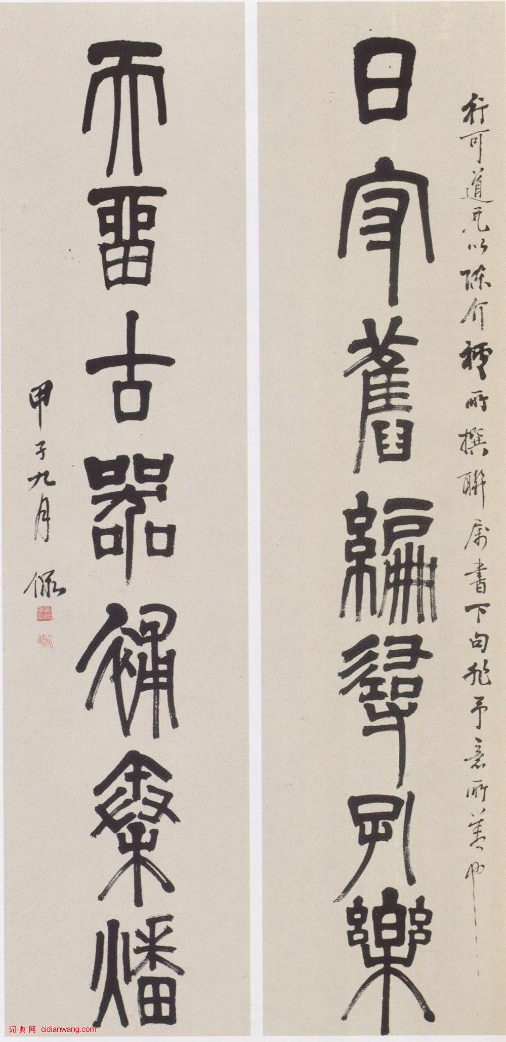 款署:行可道兄以陳介祺所撰聯屬書,下句非予意所善也。甲子九月,侃。