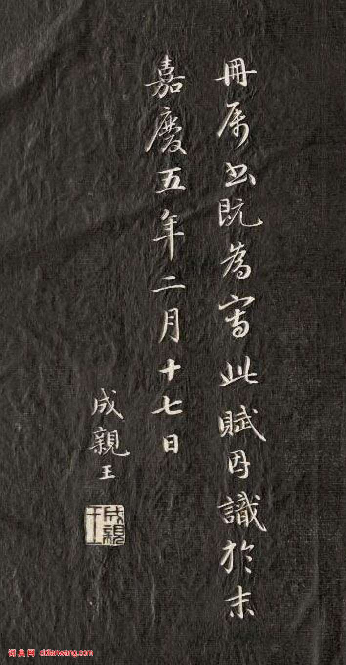書法欣賞魏晉書法唐朝書法宋朝書法元朝書法明朝書法清朝書法近現代書法字典網>> 歷代書法>> 清朝>> 成親王行楷《雪賦和月賦》(10)正文 成親王行楷《雪賦和月賦》(10)作者:成親王 書體:行楷 首 頁 上一頁 1 2 3 4 5 6 7 8 9 10 全文成親王的相關書法作品:成親王楷書對聯欣賞 成親王·雜體詩冊 成親王小楷《群仙高賦會》 成親王草書《百家姓》 成親王小楷《洛神賦》 成親王行楷《雪賦和月賦》 相關文章:包世臣行草《錄內史與謝尚書書軸》 (行草)包世臣《行草書錄內史與謝尚書書軸》紙本行草書 132×55.5cm 山西省博物...徐賁《題濯清軒》 (楷書)【釋文】題濯清軒。春草綠芳洲,清江繞舍流。芹香低渚燕,波影媚沙鷗。風滯初聞笛,花...他們的狂,成就了書法的狂【導讀】王獻之被謝安問:“你和你爸爸的書法,哪個更好?”王獻之說:“當然是我。”...東漢隸書《衡方碑》 (隸書)漢《衡方碑》,全稱《衛尉卿衡方碑》。隸書,碑文共二十三行,每行三十六字。有碑陰,...解密褚遂良《大字陰符經》筆法|《大字陰符經》墨跡本局部《大字陰符經》墨跡本,96行,461字,傳唐代褚遂良書...趙孟頫《靈隱大川濟禪師塔銘》拓本 (行書)《靈隱大川濟禪師塔銘》原文為浙江靈隱禪寺大川禪師(普濟)所書的塔銘。此作縱34....北魏《惠感造像記》 (楷書)惠感造像記拓片 比丘惠感在龍門的造像有多個,其中僅古陽洞就有四處。這些比丘惠感是...孫過庭草書《書譜》 (草書)孫過庭草書真跡書法長卷《書譜卷》墨跡本,縱26.5厘米,橫900.8厘米,台北故...康有為《行草書軸》 (行草)康有為《行草書軸》 241.7厘米×121.5厘米 汕頭市博物館藏選自2003...王羲之·快雪時晴帖 (行書)【釋文】羲之頓首。快雪時晴。佳想安善。未果為結。力不次。王羲之頓首。山陰張侯。《...