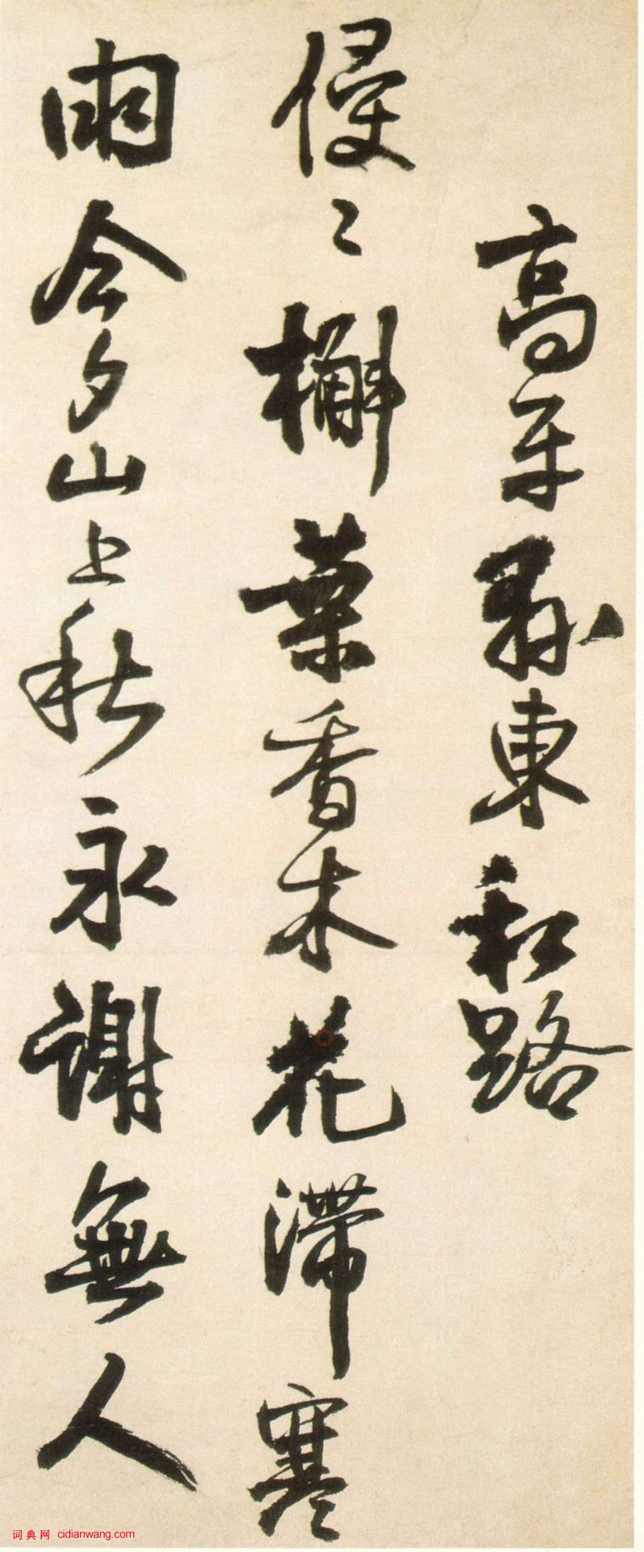 王鐸56歲行書《高平縣東私路》,清順治四年丁亥(1647年)六月,王鐸書李賀詩四首之一。