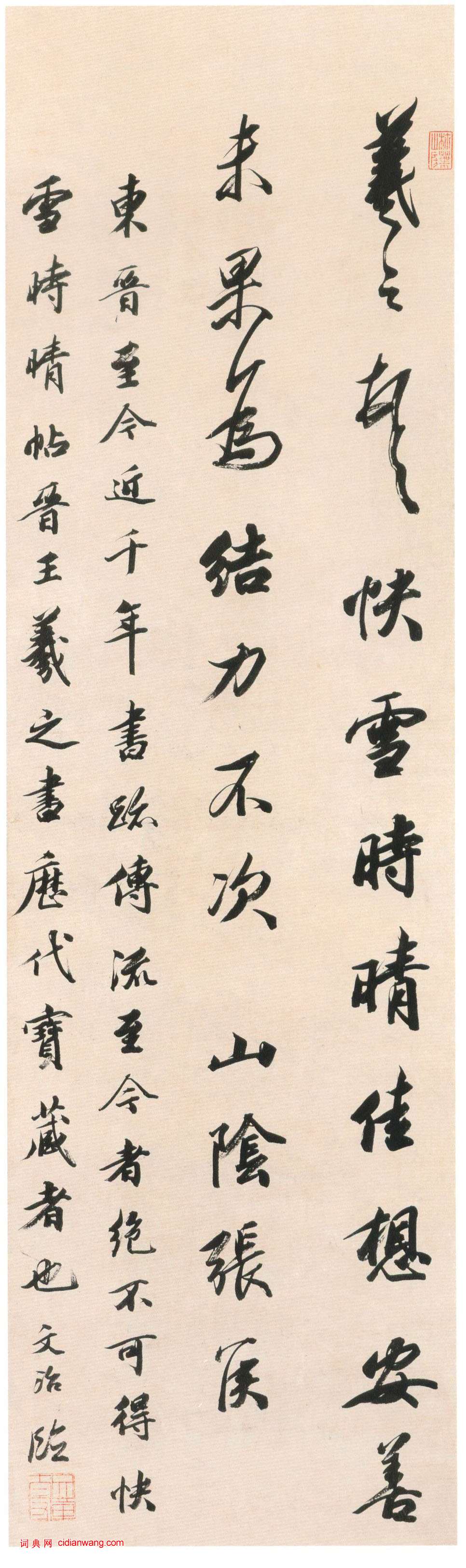 王文治《行書臨快雪時晴帖軸》 紙本行書 128×37.5cm 深圳市博物館藏