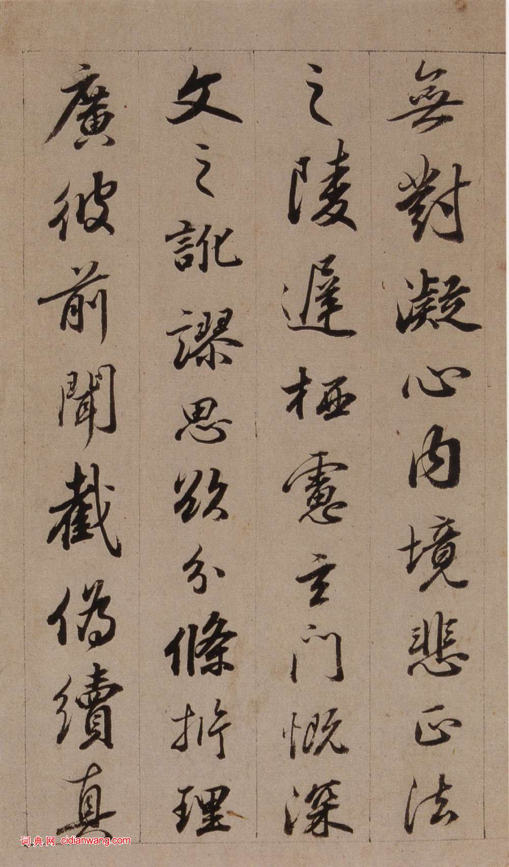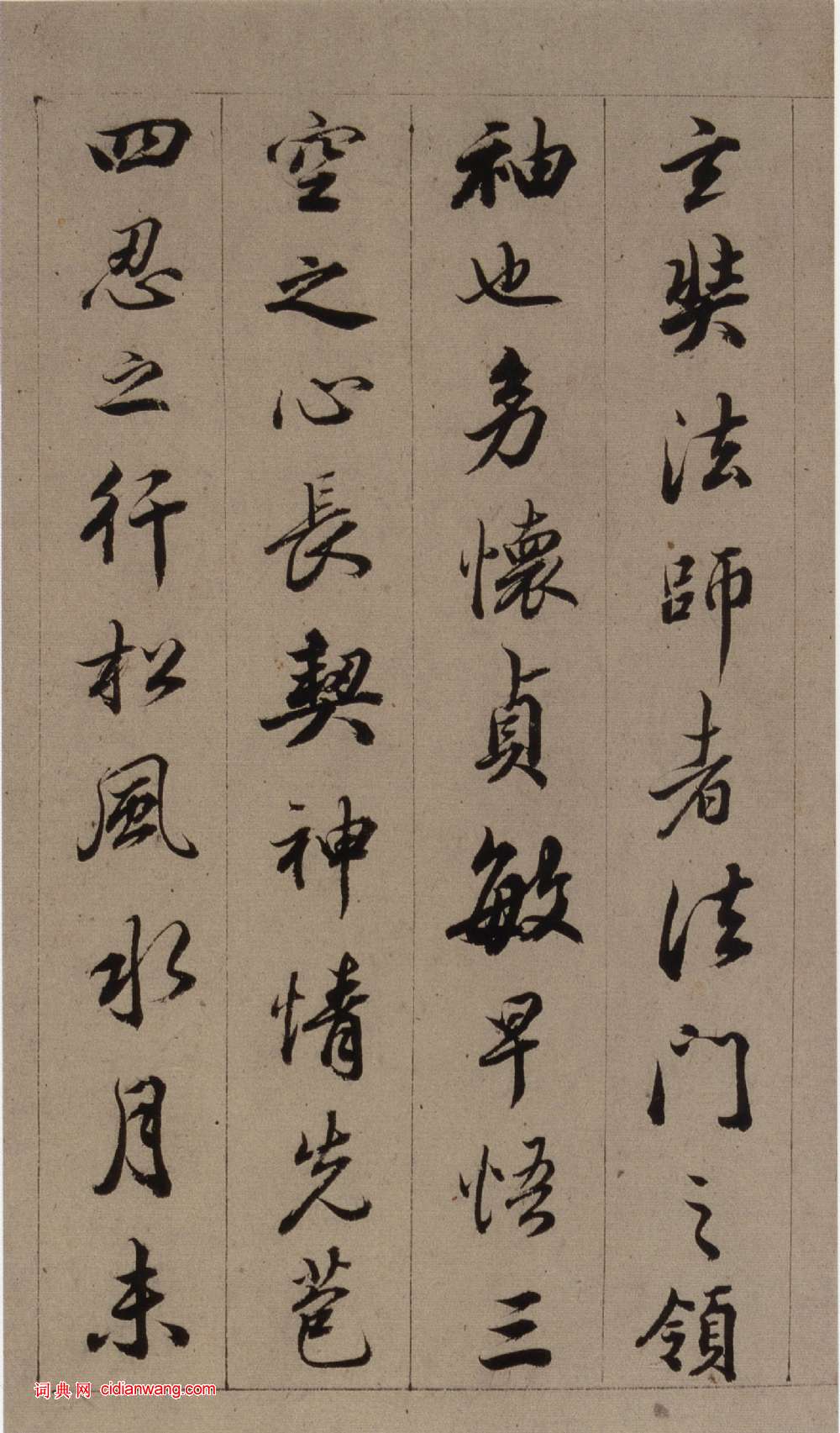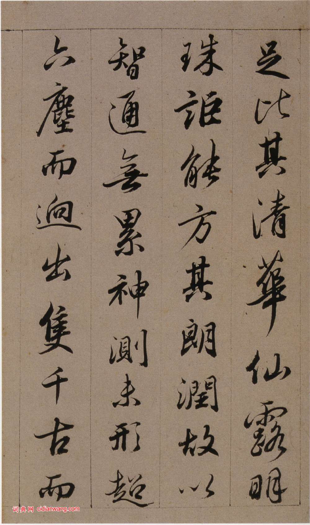 書法欣賞魏晉書法唐朝書法宋朝書法元朝書法明朝書法清朝書法近現代書法字典網>> 歷代書法>> 清朝>> 查昇《臨懷仁集王羲之聖教序》(5)正文 查昇《臨懷仁集王羲之聖教序》(5)作者:查昇 書體:行書 首 頁 上一頁 1 2 3 4 5 6 7 8 9 10 下一頁 尾 頁 全文2018-3-9 21:25:31 查昇的相關書法作品:查昇行書《錄劉禹錫五律詩軸》 查昇《臨懷仁集王羲之聖教序》 查昇《行書摘錄羅浮圖志軸 》 查昇《行書七絕詩軸》 相關文章:于右任《草書陸游湖村野興詩軸》 (草書)于右任《草書陸游湖村野興詩軸》紙本草書 85×35.5cm 台北國立歷史博物館...吳雯《行書送徐道沖之粵東五言詩軸》 (行書)吳雯《行書送徐道沖之粵東五言詩軸》紙本行書 140×41cm 山西省博物院藏 ...張瑞圖草書《嚴嵩過永寧高座二寺五言詩扇》 (草書)張瑞圖《書嚴嵩過永寧高座二寺五言詩扇》 紙本草書 16×48.4cm 廣州藝術...白蕉《書法十講》第五講 運筆問題 (不詳)今天所講的是關於運筆問題,本問題包括筆法、墨法兩項。筆法是談使轉;墨法是談肥瘦。...鄧石如篆書《四箴四條屏》 (篆書)《四箴四條屏》,篆書,紙本,縱206cm,橫31.3cm。北京故宮博物院藏。此屏...王寵《草書五言詩》軸 (草書)王寵《草書五言詩》軸 紙本,79cm×36cm 安徽省博物館藏 釋文:帝里紅櫻...吳大澂篆書《集石鼓文樹古水流八言聯》 (篆書)吳大澂《集石鼓文樹古水流八言聯》篆書175.5×31.5cm×2 同治八年(...張旭楷書《嚴仁墓誌》 (楷書)此碑於1992年元月發現於河南省洛陽市邙山腳下偃師縣磷肥廠擴建改造工地發掘的一處...伊秉綬隸書《萬卷十年七言聯》 (隸書)伊秉綬《隸書“萬卷十年”七言聯》灑金箋隸書 199×34.5cm×2 安徽省...徐渭《草書詩軸》 (草書)徐渭《草書詩軸》 紙本,行草書,縱123.4厘米,橫59厘米,上海博物館藏。【釋...
