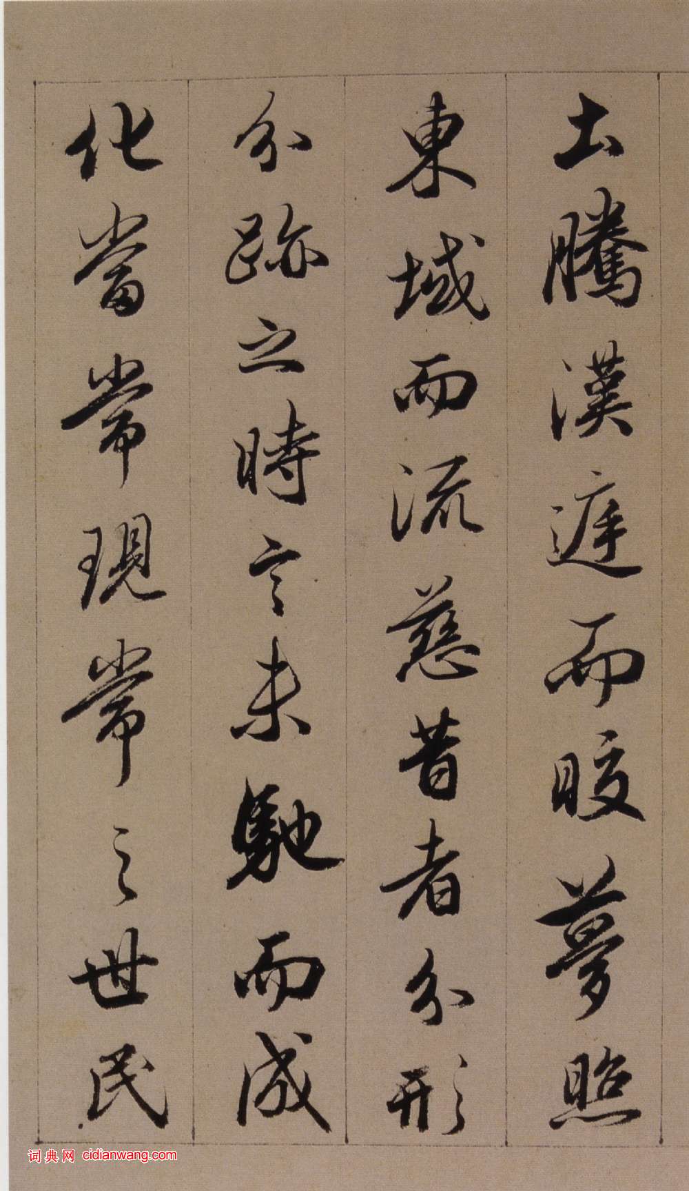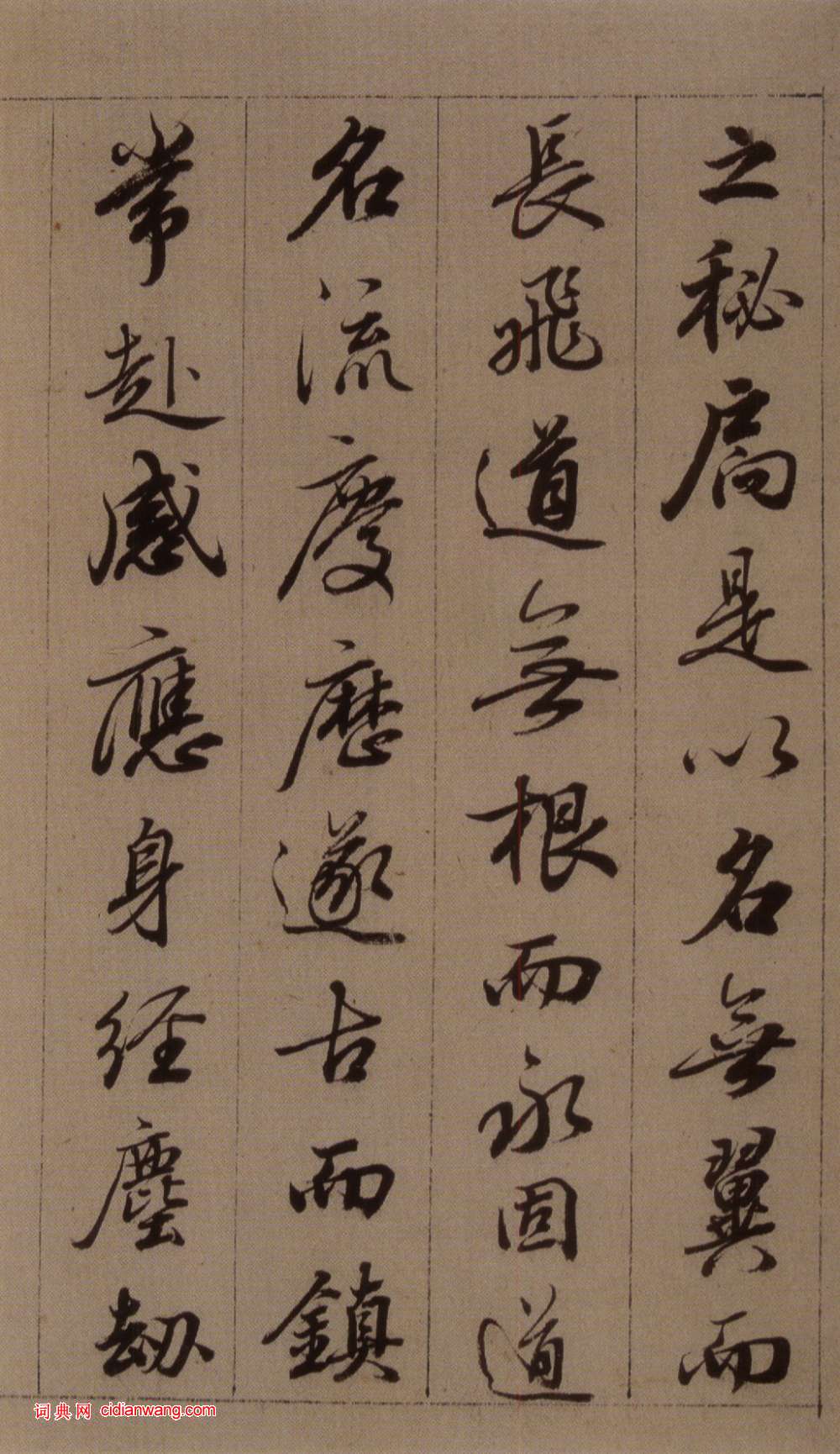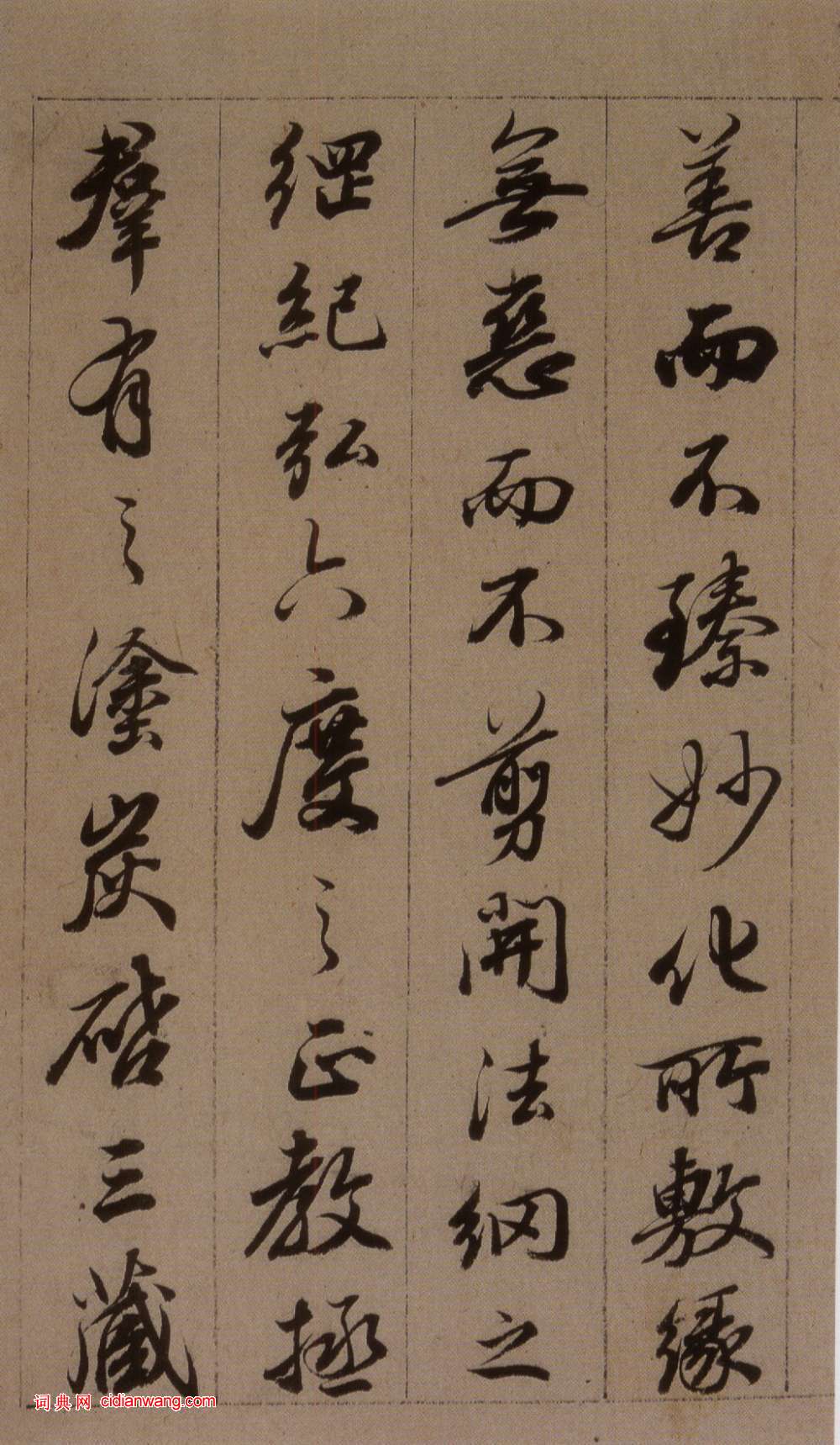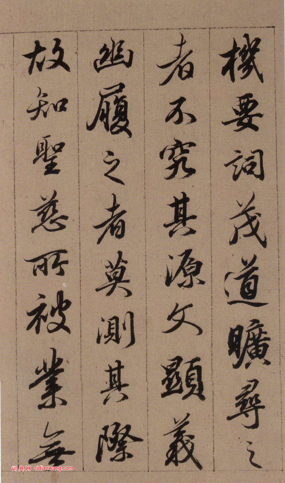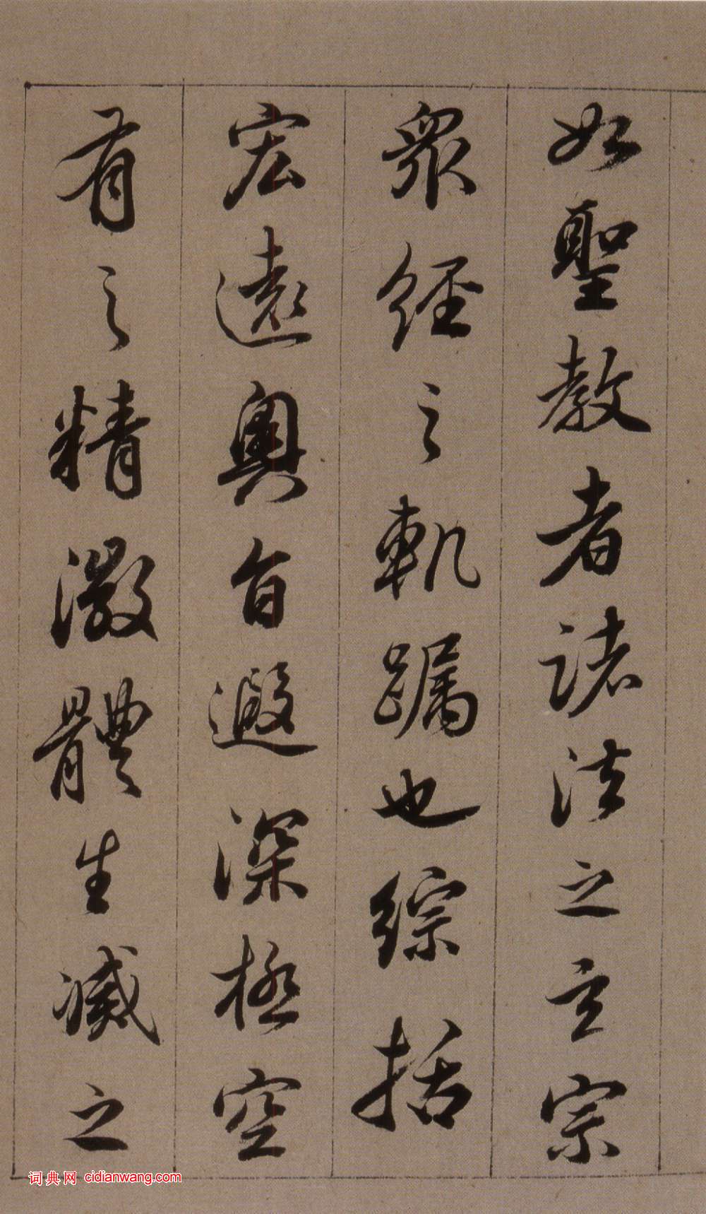 趙(孟頫)與董(其昌)雖然在技法嫻熟的程度上是不相伯仲的,但趙的書法成就更多是一種功力,而董的書法有一種精神性的實在,他善於提煉神韻,有超凡脫俗的精神嚮往,而且寫來輕鬆自然無一絲人工矯揉造作的痕跡,加之其對理論的深入研究,故其作品格調高人一籌,查升學董捕捉到了這一點,很完美地將王字用董氏筆法再現出來,應該說這是臨寫《聖教序》中不可多得的上佳範本。