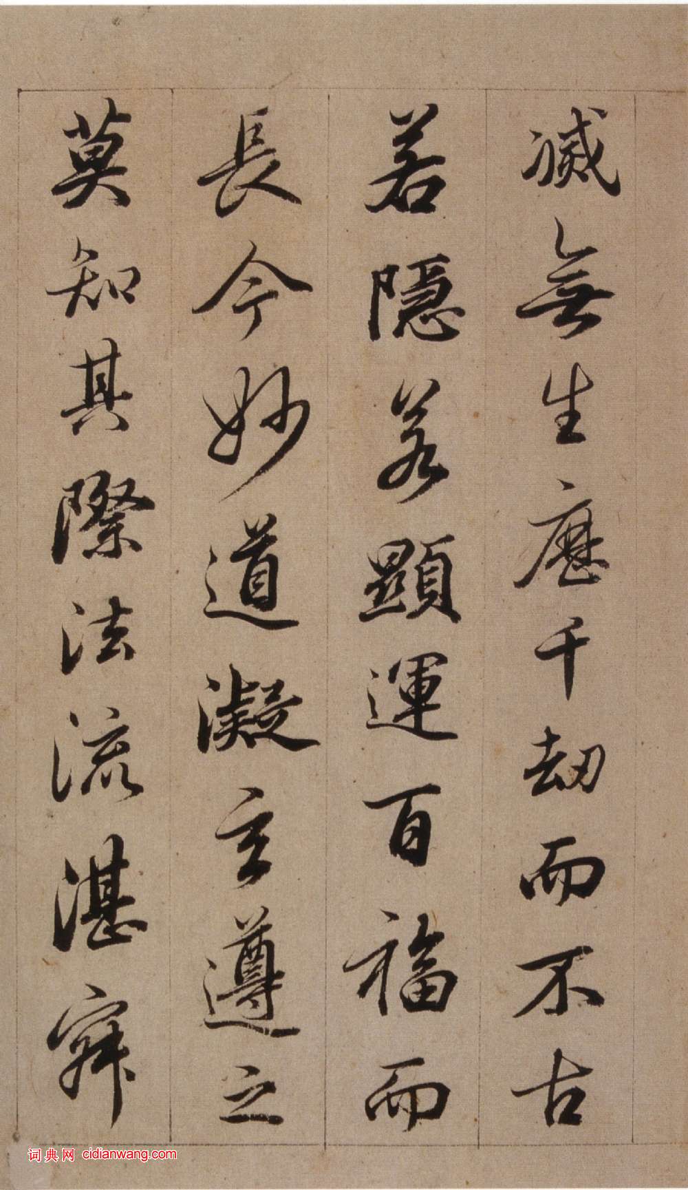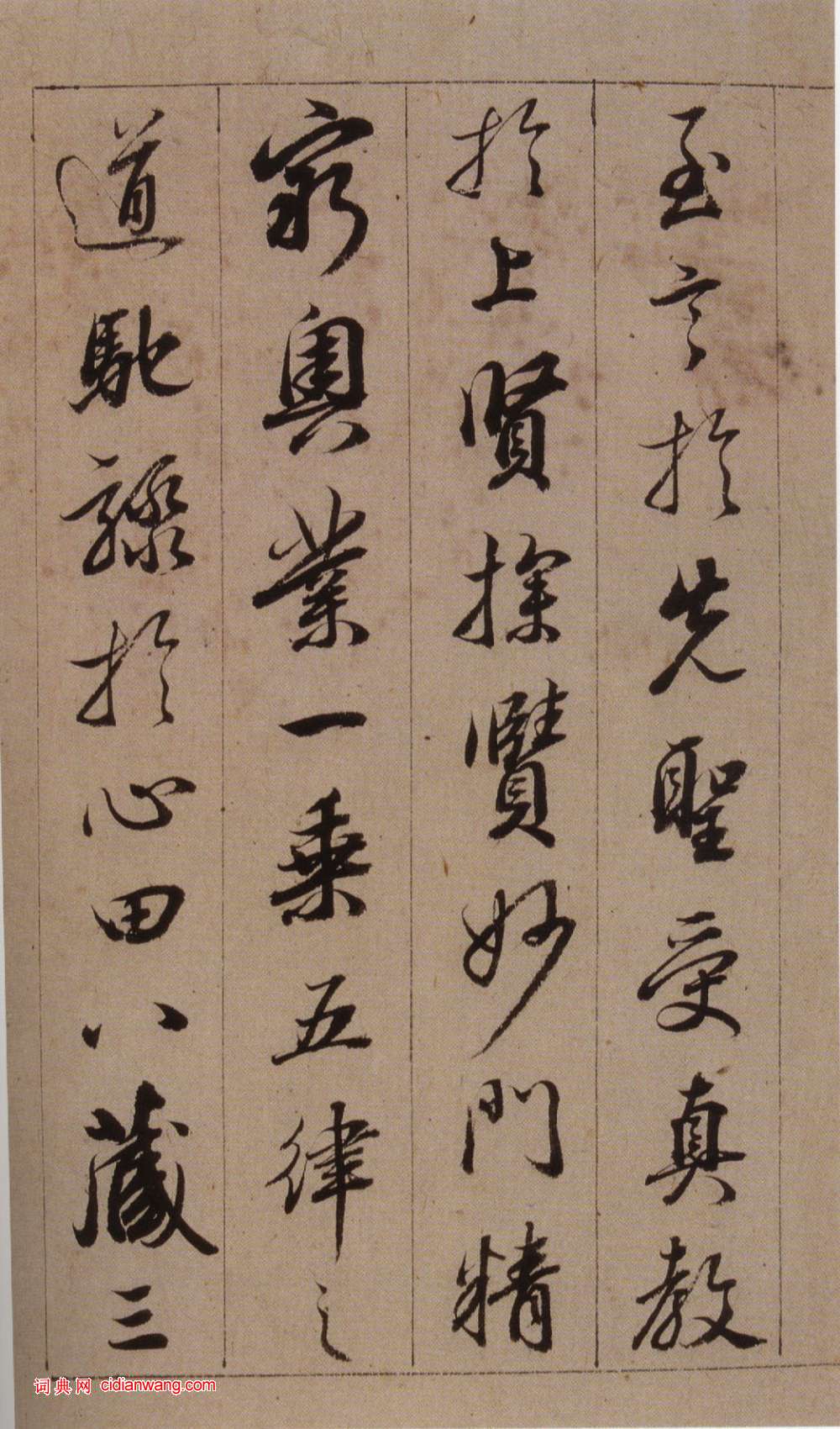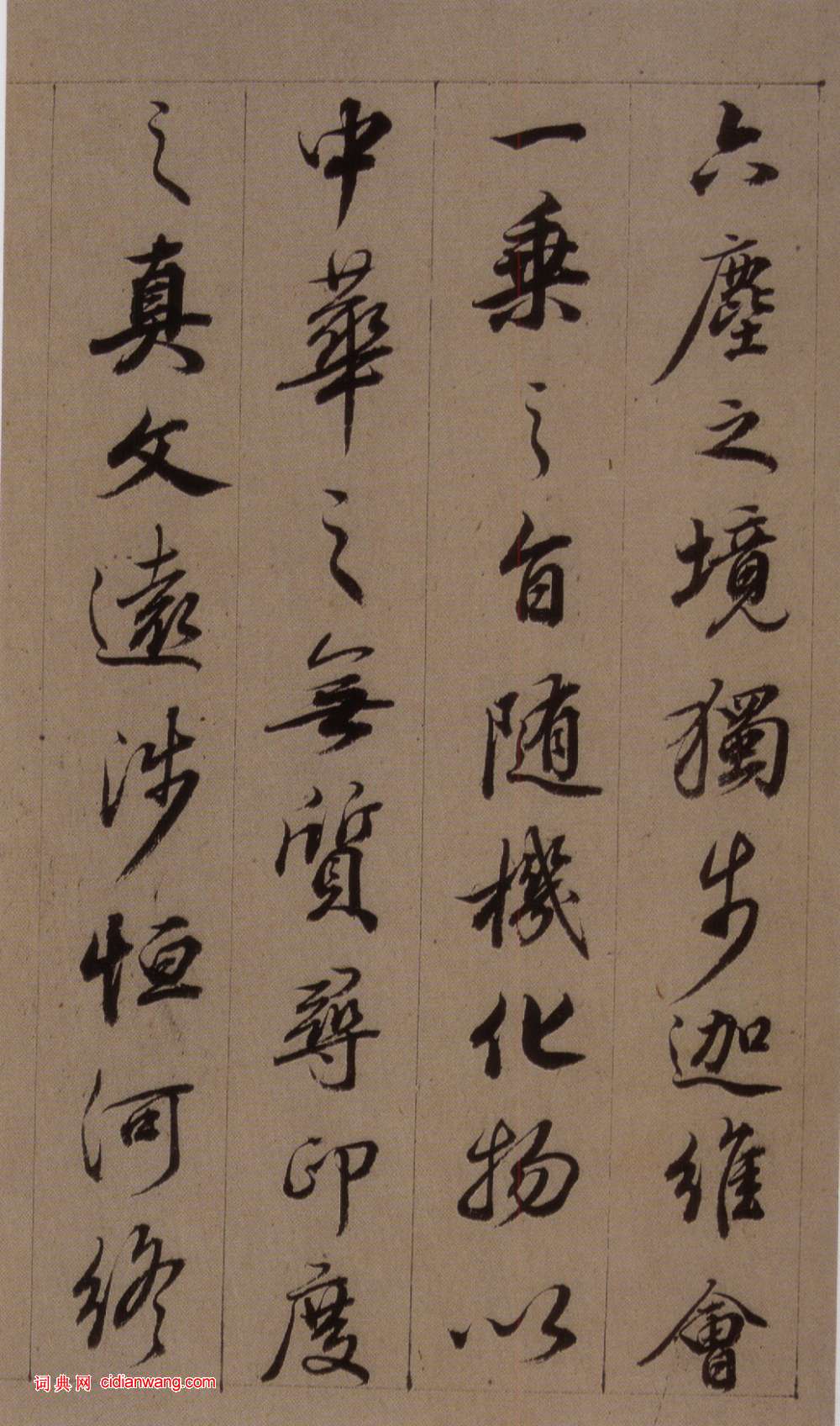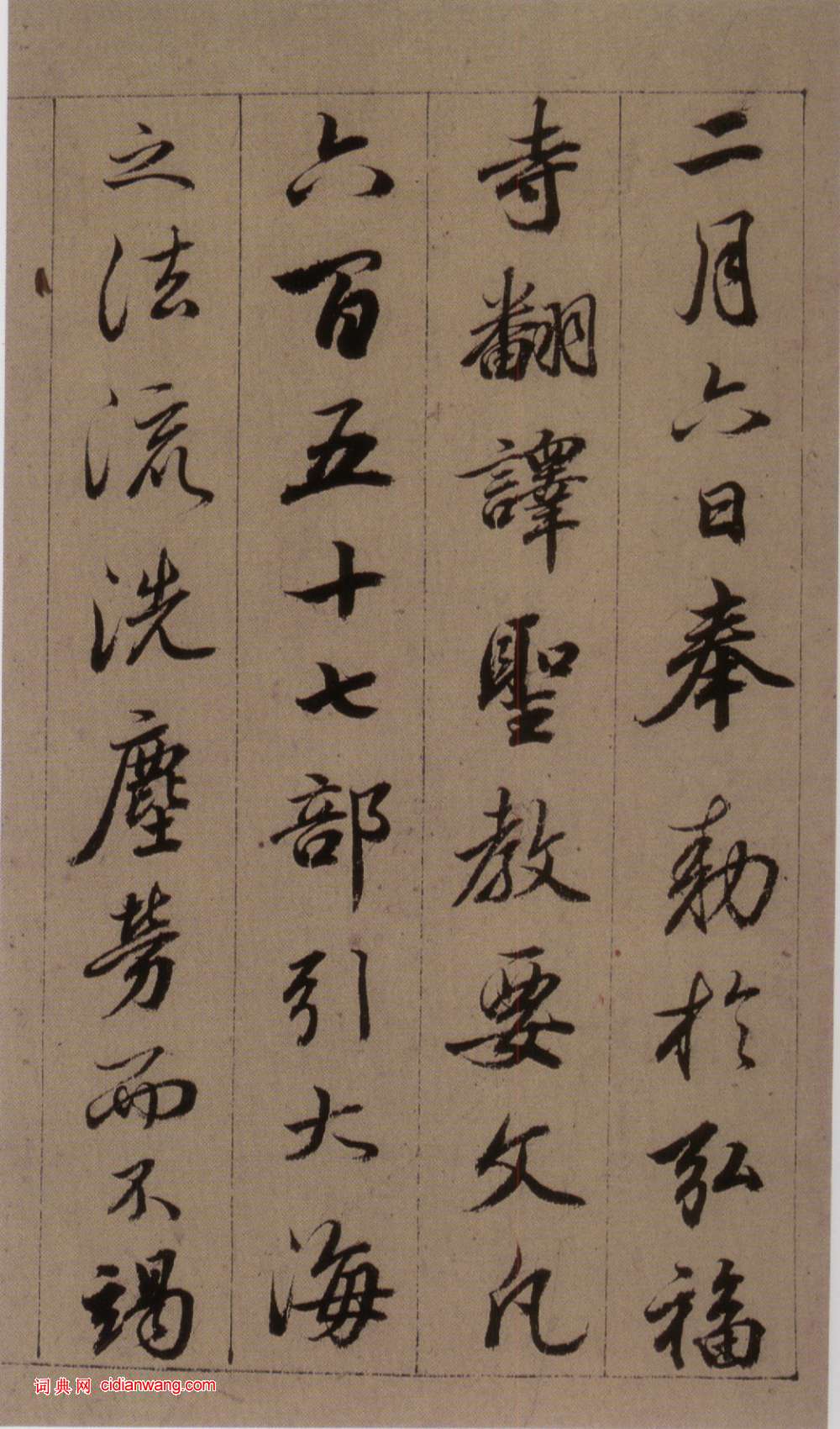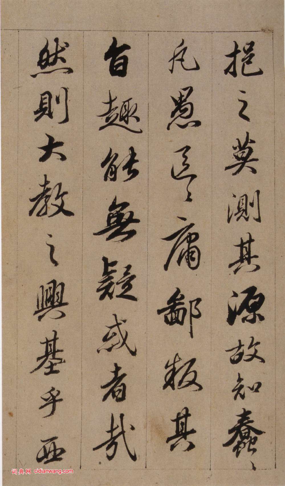 趙(孟頫)與董(其昌)雖然在技法嫻熟的程度上是不相伯仲的,但趙的書法成就更多是一種功力,而董的書法有一種精神性的實在,他善於提煉神韻,有超凡脫俗的精神嚮往,而且寫來輕鬆自然無一絲人工矯揉造作的痕跡,加之其對理論的深入研究,故其作品格調高人一籌,查升學董捕捉到了這一點,很完美地將王字用董氏筆法再現出來,應該說這是臨寫《聖教序》中不可多得的上佳範本。