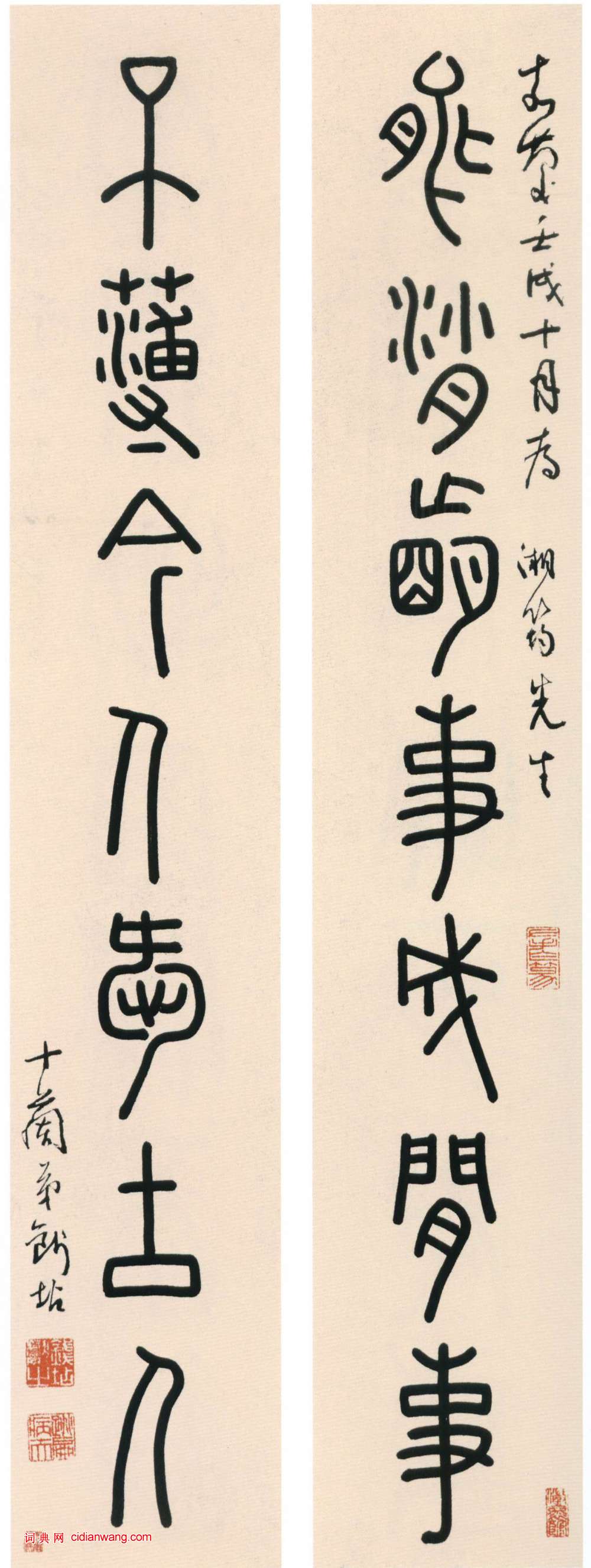 錢坫《篆書能消不薄七言聯》 紙本篆書 95.5×17cm ×2 無錫市博物館藏