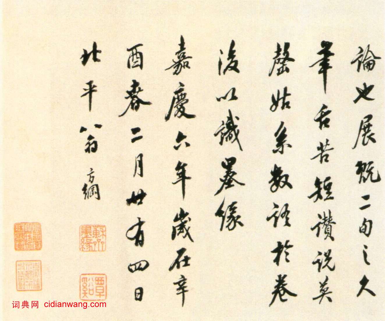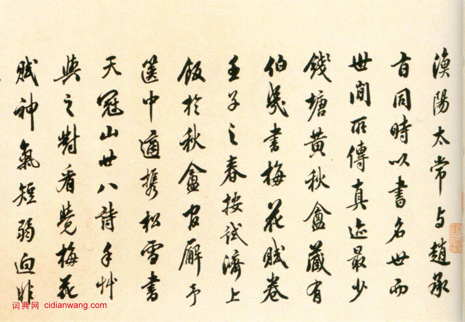 資源下載魏晉書法唐朝書法宋朝書法元朝書法明朝書法清朝書法近現代書法字典網>> 歷代書法>> 清朝>> 翁方綱《跋鮮于樞老子道德經卷》正文 翁方綱《跋鮮于樞老子道德經卷》作者:翁方綱 書體:行書 翁方綱《跋鮮于樞老子道德經卷》,行書,北京故宮博物院藏釋文:漁陽太常與趙承㫖同時以書名世,而世間所傳真跡最少,錢塘黃秋 藏有伯機書梅花賦卷...2018-3-24 9:08:49 翁方綱的相關書法作品:翁方綱·行書七言詩 翁方綱《行書七絕詩軸》 翁方綱行書《斜街行立軸》 翁方綱《跋鮮于樞老子道德經卷》 翁方綱《隸書池上竹間七言聯》 翁方綱·行書立軸 翁方綱行書《論化度寺碑軸》 翁方綱隸書《翁方綱漢隸四種》 翁方綱·隸書王昶神道碑 相關文章:祁豸佳行書《五言詩軸》 (行書)祁豸佳《行書五言詩軸》紙本行書 72.9×21.3cm 安徽省博物館藏 釋文:...李宗諤·送士龍詩 (楷書)李宗諤《送士龍詩》,楷書,台北故宮博物院藏。宗諤工隸書,為西崑體詩人之一。著有文...柯九思行楷《上京宮詞》,兩種 (行楷)柯九思《上京宮詞》 紙本 30.9X53cm 美國普林斯頓大學美術館藏《上京宮詞...徐生翁《又有時見行書七言聯》 (行書)徐生翁《又有時見行書七言聯》 釋文:又有石榴才一幅,時見松櫟皆千圍。辰生先生屬。...宋克《唐張懷瓘論用筆十法》 (行書)宋克《唐張懷瓘論用筆十法》,紙本,縱46.7厘米,橫37.7厘米。北京文物局藏。...王鐸草書《題野鶴陸舫齋》 (草書)明代王鐸草書《題野鶴陸舫齋》自署書於清順治七年(1650)。紙本。自作詩五律十首...王鐸《跋西嶽華山廟碑》 (小楷)王鐸《跋西嶽華山廟碑》,小楷。王鐸明末清初貳臣、書畫家。字覺斯,一字覺之。號十樵...蔡襄行書《澄心堂紙帖》 (行書)蔡襄《澄心堂紙帖》尺牘 紙本 1063年作 行楷書 24.7 x 27.1cm ...趙孟頫行書《秋興賦》 (行書)趙孟頫《秋興賦》 紙本,縱25.7厘米,橫284.3厘米,上海博物館藏。《秋興賦...文徵明《草書七絕詩軸》 (草書)文徵明《草書七絕詩軸》 縱109.6厘米 橫30.6厘米 蘇州博物館藏釋文:玉泉...