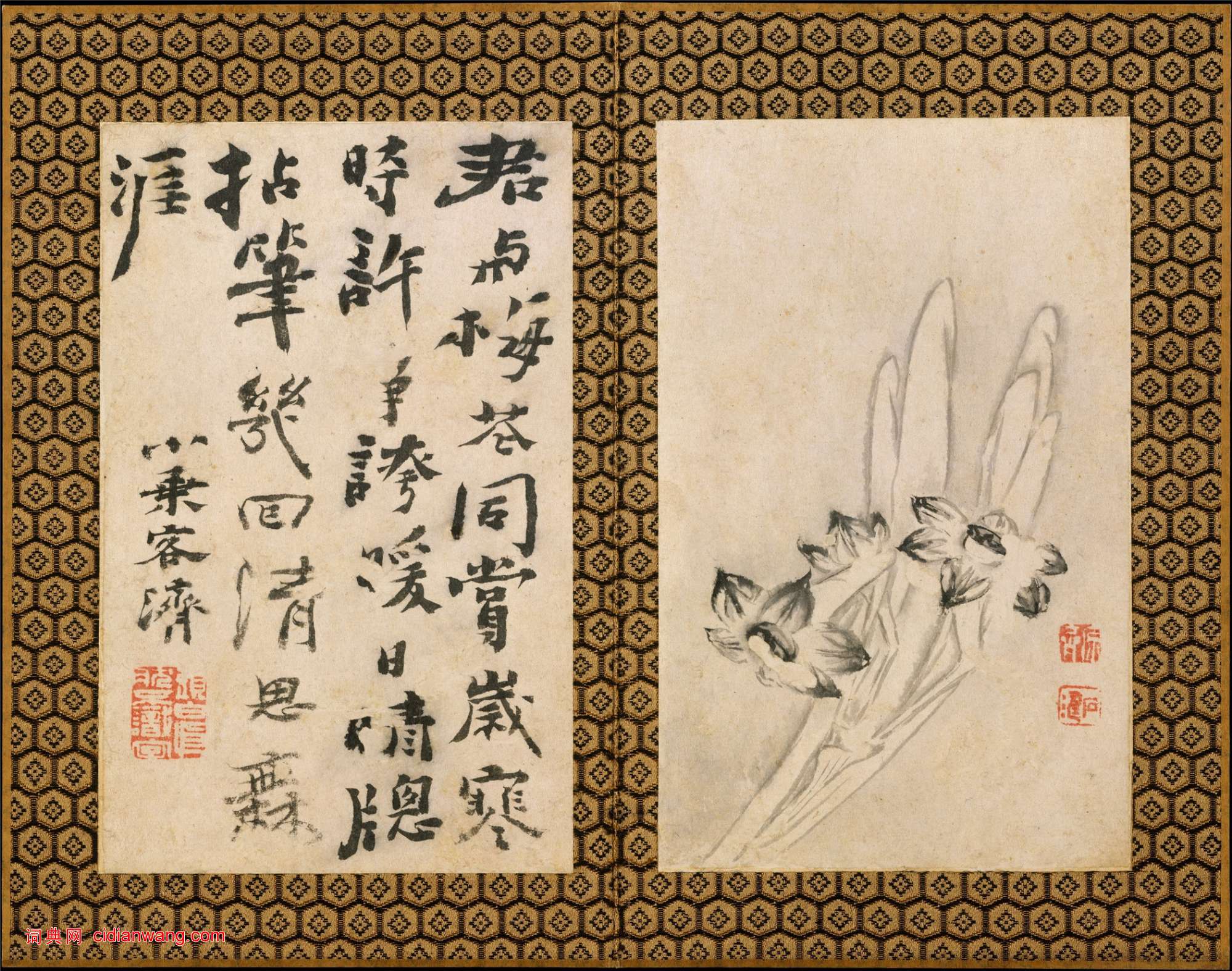 第八幀:九月寒香露太真,東籬晚節可為鄰。從來天地無私運,梅菊同開一樣春。九月梅花二首之一。瞎尊者,原濟。