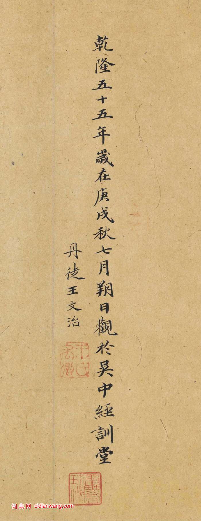 "乾隆五十五年歲在庚戌秋七月朔日,觀於吳中經訓堂。丹徒王文治。"