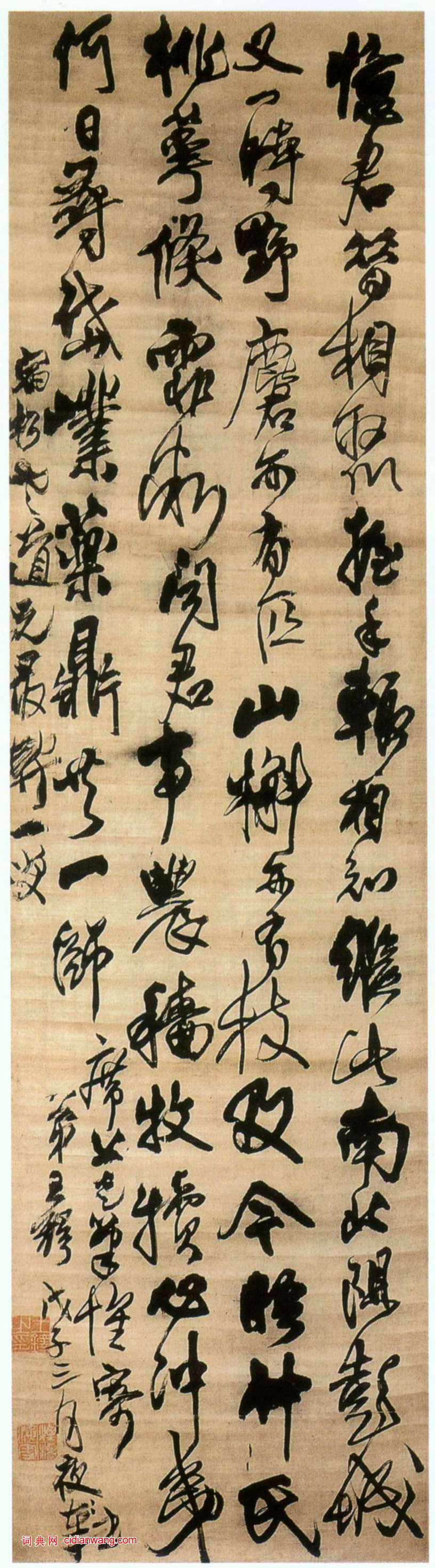 王鐸《為宿松書詩》立軸 行書 綾本 215X56.4cm 遼寧省博物館藏