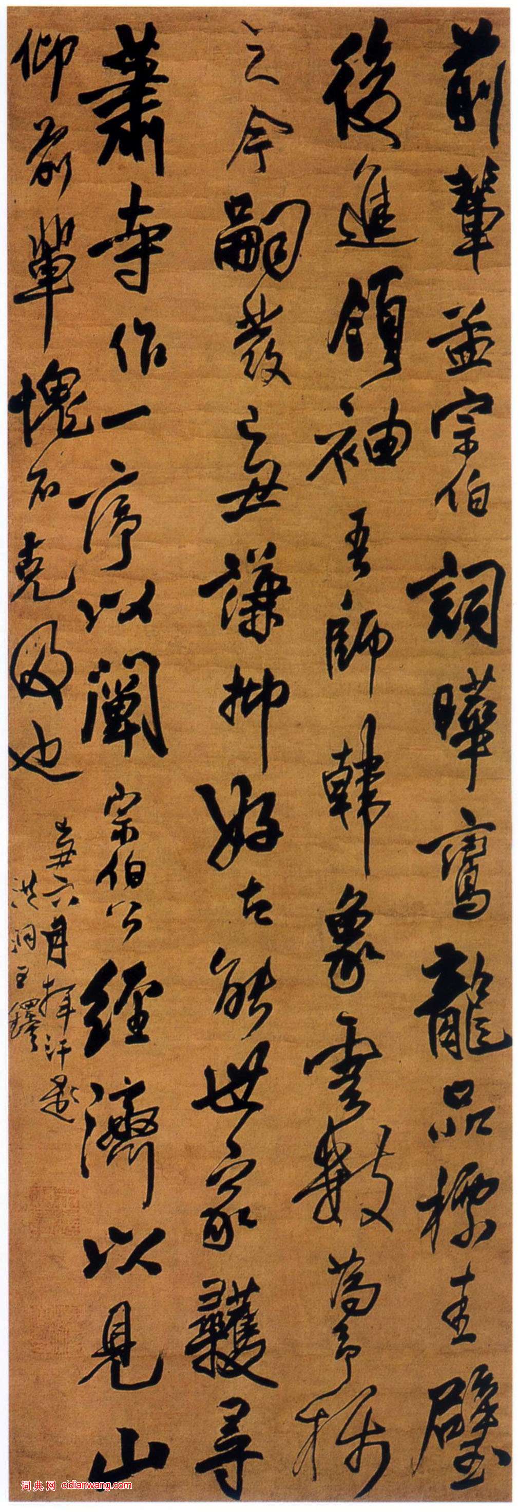 王鐸行書《前輩孟宗伯》立軸 絹本,書於 清順治七年(己丑1649年), 155X51cm,上海朵雲軒藏。