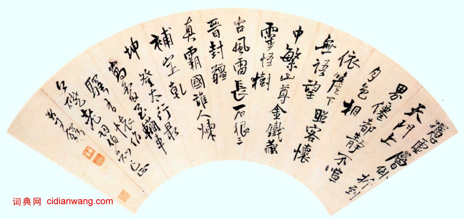 王鐸七律登太行最高處驛作扇面,行書, 縱51cm,橫17.5cm,美國紐約楊思勝私人收藏。