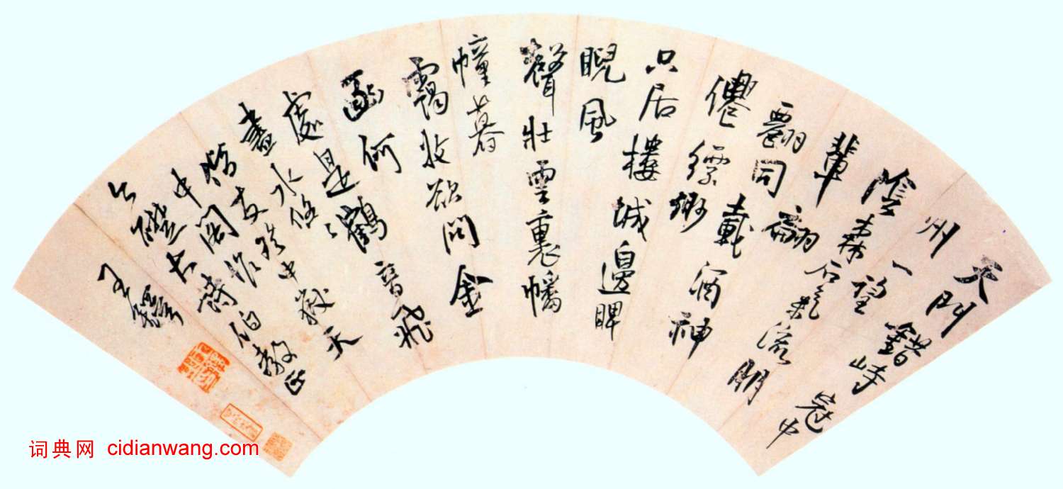 王鐸行書《偕友登中嶽天中閣作扇面》