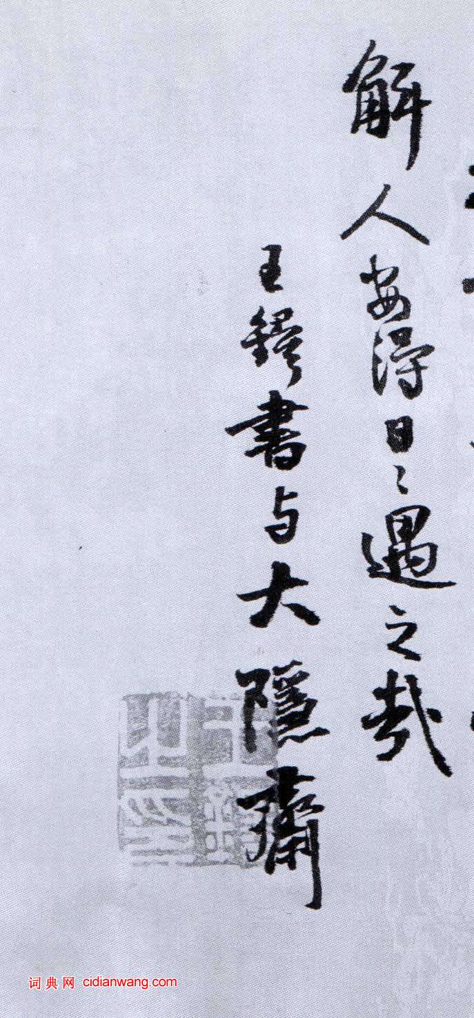 償得長生秘,休忘造化功。 己丑十月。 瘧新瘥,頭眩暈,體猶作楚。過三弟大隱齋一更濡墨書此。無善筆,炬下眯瞢,亦覺不惡。三弟知書畫大意,不肯用力時習,然能知勝於不知者,遠若逕庭,不可混而不辨也 。