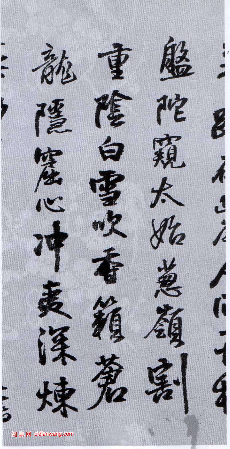 王鐸《蘜潭纂峨眉山紀詩》,行書,花綾 25x238cm,天津博物館藏。
