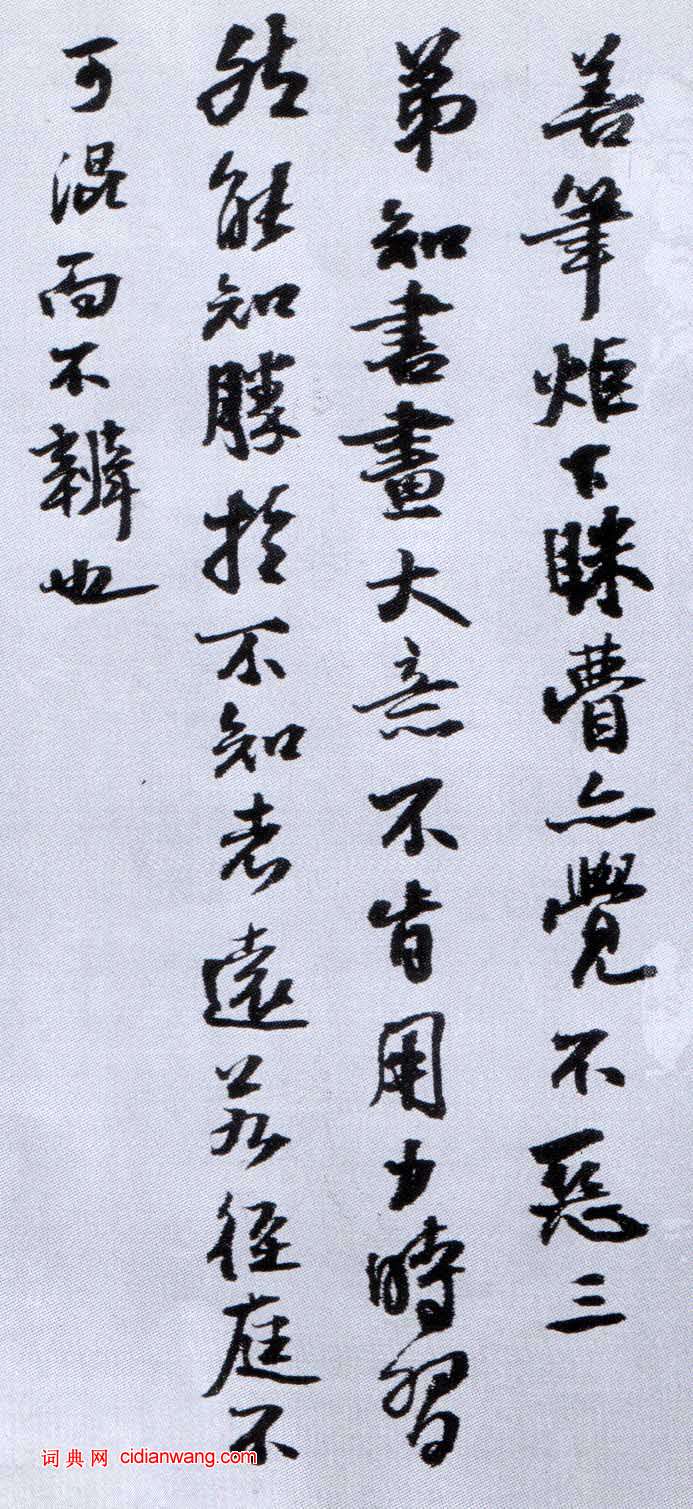 書學當少年時,恆易言之。迨五十彌喻其難,蓋書,古之跡易學,晉之神,瞠乎其後,逾寫逾望洋,始覺少年氣浮心粗,不臻其室,故往往輕為發議焉耳。精要難窺,外藩易涉。登五嶽然後知山,浮海澳然後知海。詩、舉業、文、畫皆然。嗚呼!索解人安得日日遇之哉。