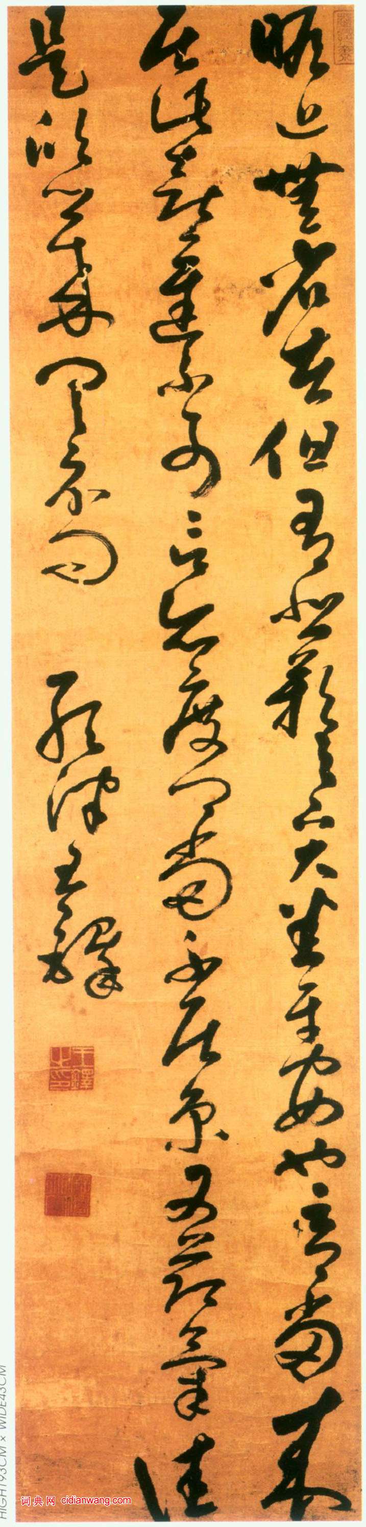 王鐸行書《節臨王羲之瞻近帖》立軸, 縱193cm, 橫43cm, 美國紐約楊思勝私人收藏。