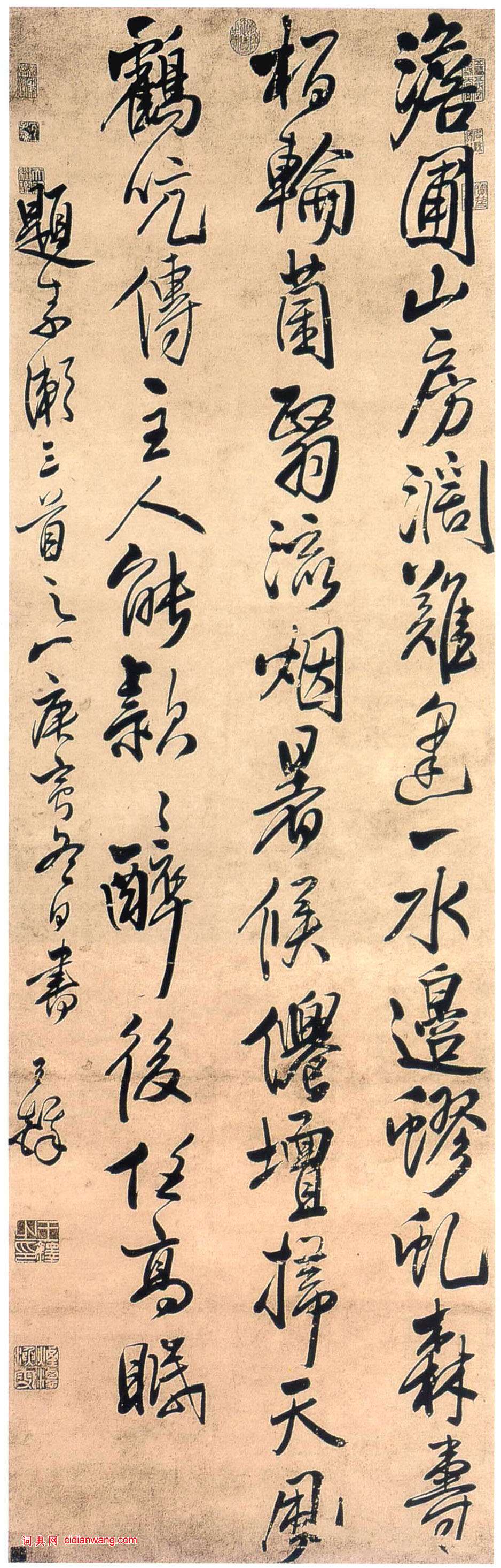 王鐸《行書立軸》,紙本 ,書於清順治七年(庚寅1650年),縱179cm ,橫56·5cm, 首都博物館藏。