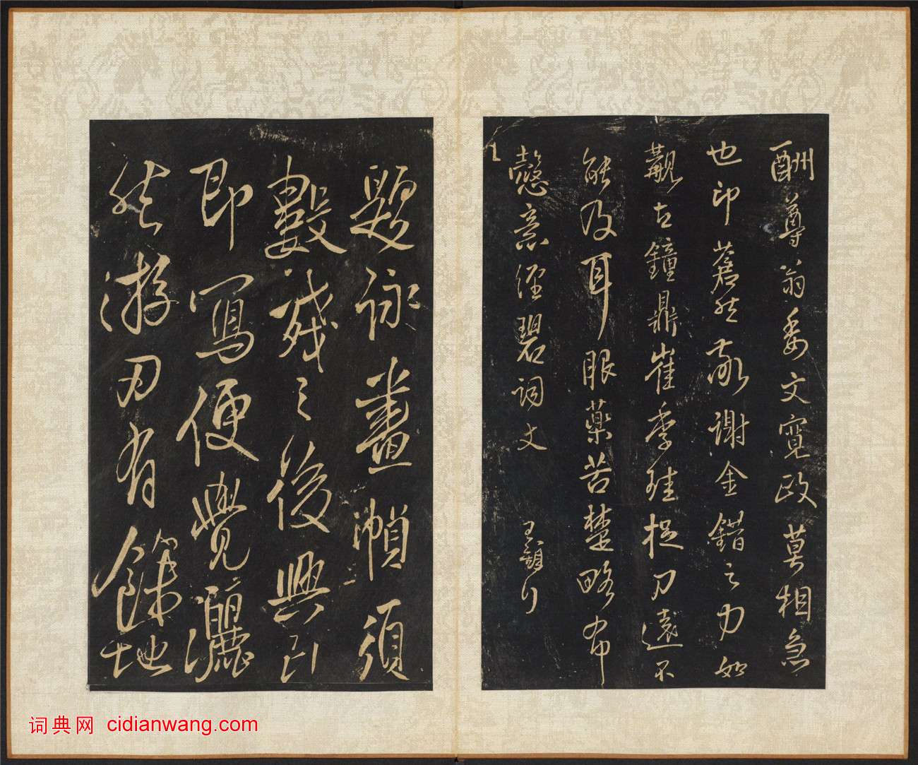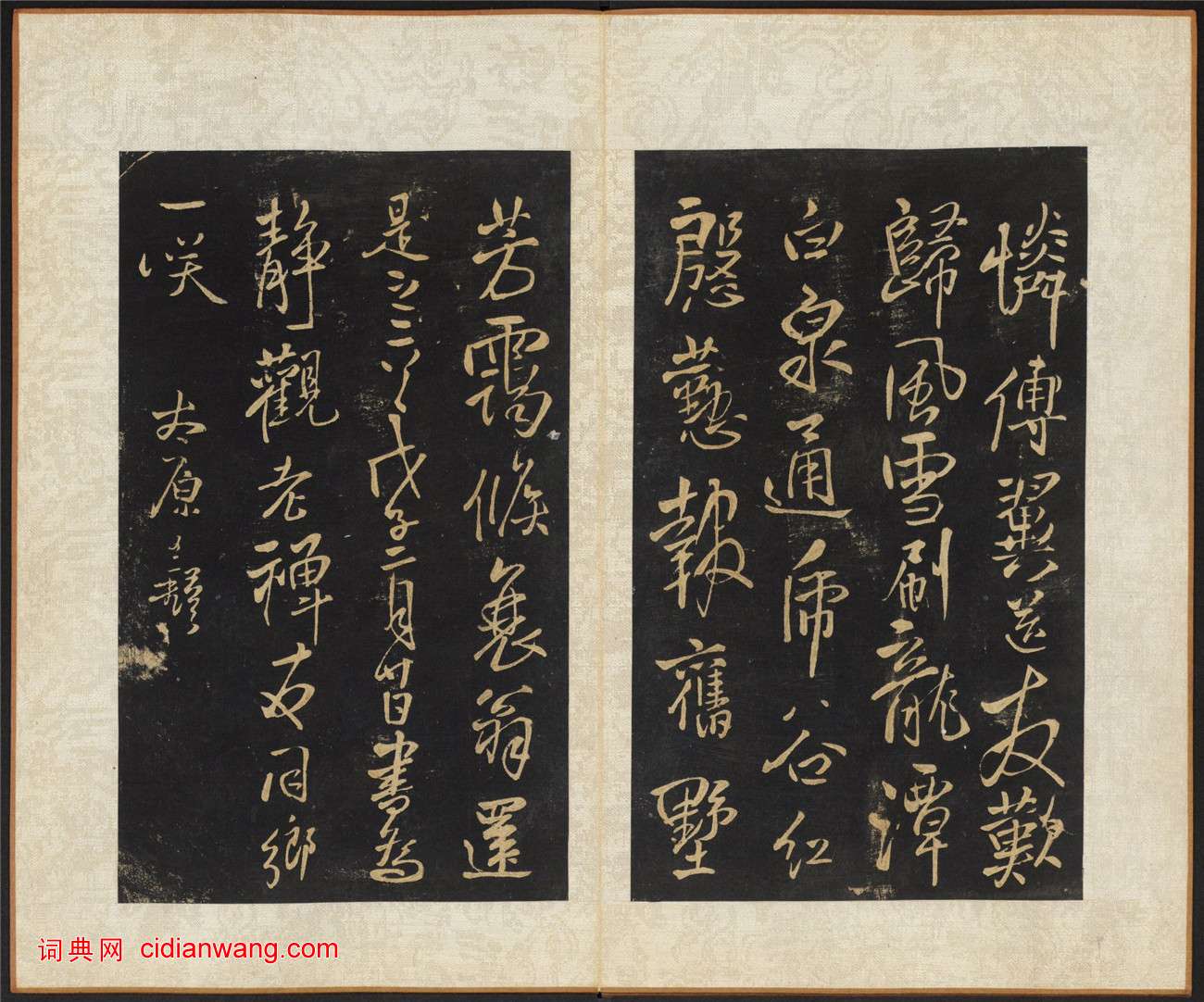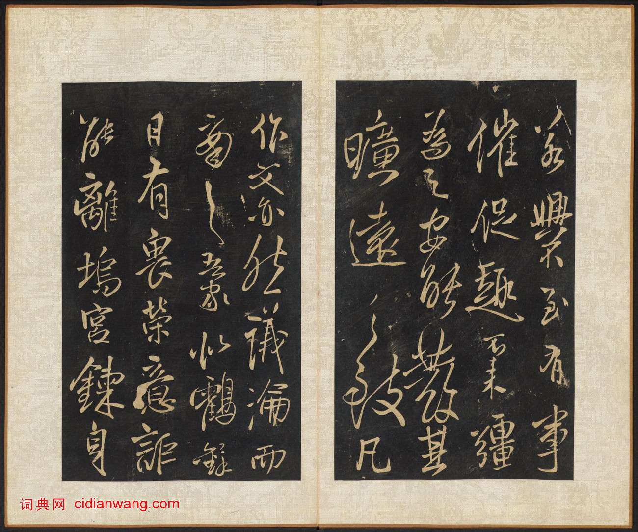 王鐸《擬山園帖》,共十卷,清代個人叢帖。清順治八年至十六年(公元1651-1659年)王鐸之子無咎撰集,古燕呂昌摹,張翱鐫,經折裝,墨紙尺寸:22.7x13.3 cm。帖名行書。此帖全刻王鐸一家之書,共103種,其中大多為臨古之書。這也是王鐸的最有名的代表作,世稱“神筆王鐸”。此本為清順治16年(1659)拓本,哈佛大學圖書館藏。