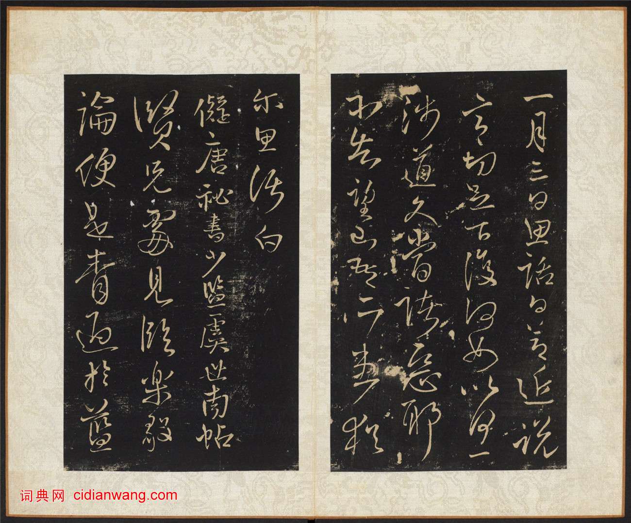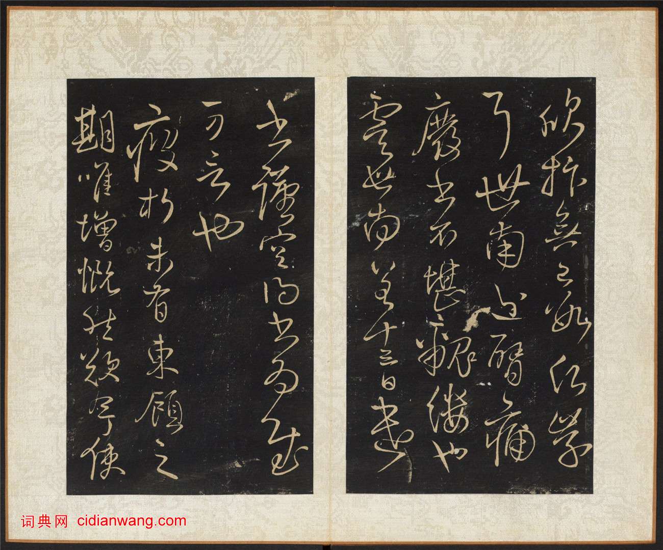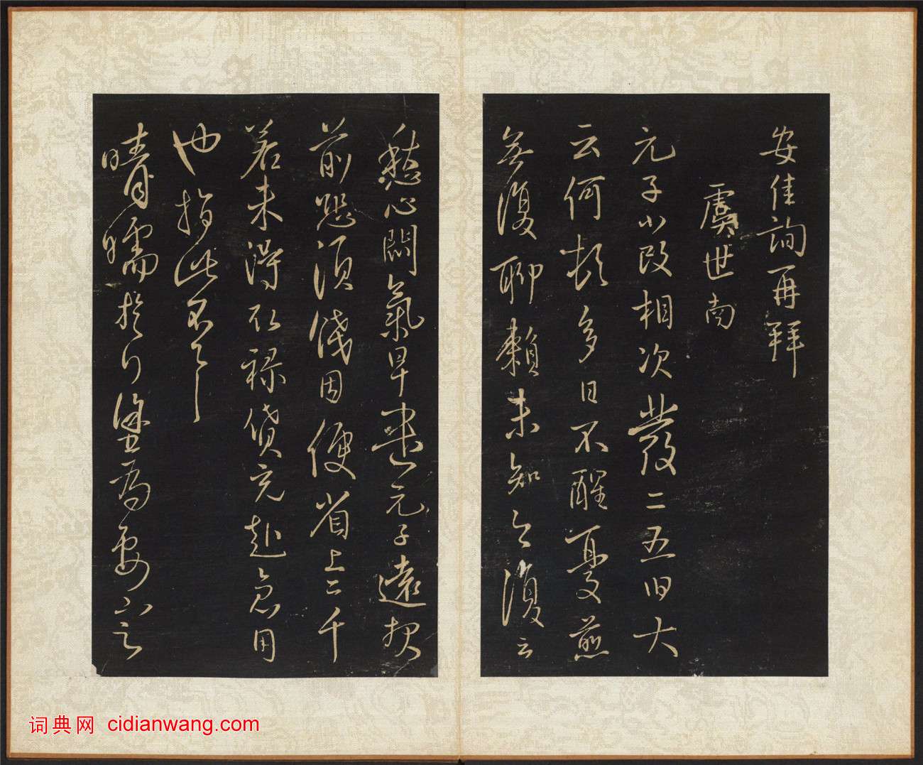 王鐸《擬山園帖》,共十卷,清代個人叢帖。清順治八年至十六年(公元1651-1659年)王鐸之子無咎撰集,古燕呂昌摹,張翱鐫,經折裝,墨紙尺寸:22.7x13.3 cm。帖名行書。此帖全刻王鐸一家之書,共103種,其中大多為臨古之書。這也是王鐸的最有名的代表作,世稱“神筆王鐸”。此本為清順治16年(1659)拓本,哈佛大學圖書館藏。