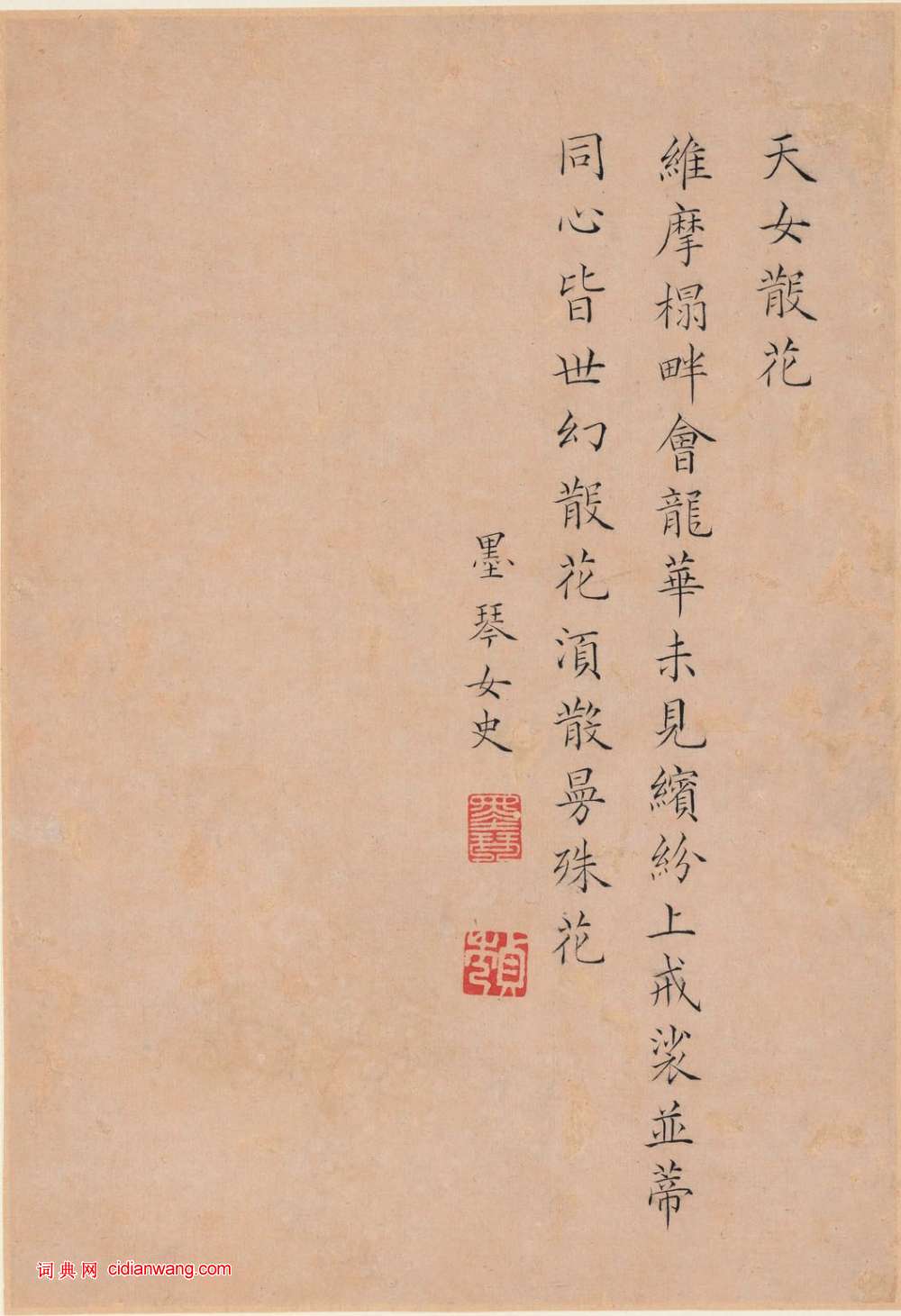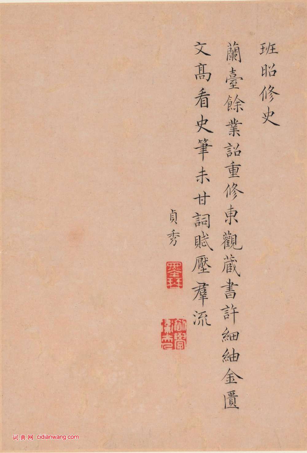資源下載魏晉書法唐朝書法宋朝書法元朝書法明朝書法清朝書法近現代書法字典網>> 歷代書法>> 清朝>> 曹貞秀小楷《列女圖冊》(2)正文 曹貞秀小楷《列女圖冊》(2)作者:曹貞秀 書體:小楷 班昭修史天女散花首 頁 上一頁 1 2 3 4 5 6 7 8 9 下一頁 尾 頁 全文2018-10-29 18:10:16 相關文章:隸書怎樣入門64法!隸書,亦稱漢隸,是漢字中常見的一種莊重的字型,書寫效果略微寬扁,橫畫長而直畫短,...范仲淹《道服贊》 (小楷)此帖是范仲淹為同年友人“平海書記許兄”所制道服撰寫的一篇贊文,稱友人制道服乃“清...董其昌行書《岳陽樓記》卷 (行書)董其昌《岳陽樓記》卷 紙本,行書,縱37.6cm,橫1499.5cm。北京故宮博...文徵明行草《胡笳十八拍》 (行草)文徵明行草作品欣賞《胡笳十八拍》,《胡笳十八拍》是唐代劉商創作的一首古琴曲法,文...傅山《草書五言詩》 (草書)傅山《草書五言詩》軸 綾本 171×48.5cm 來自中貿聖佳國際拍賣有限公司...王時敏隸書《七言詩軸》 (隸書)王時敏《隸書七言詩軸》紙本隸書 118.6.5× 48.5cm 上海博物館藏 ...趙之謙《書畫扇面合景軸——隸書扇面》 (隸書)趙之謙《書畫扇面合景軸——隸書扇面》絹本 直徑23cm 浙江省博物館藏 釋文:夙...米芾·焚香帖 (草書)【釋文】雨三日未解,海岱只尺不能到,焚香而已。日短不能晝眠,又人少往還,惘惘!足...趙構·賜岳飛批剳卷 (行書)趙構《賜岳飛批剳卷》,紙本,行楷,縱36.7厘米,橫67.5厘米。台北故宮博物院...王寵行書《玄墓之行帖》 (行書)王寵《玄墓之行帖》頁 台北故宮博物院藏 【釋文】向者玄墓之行。知臧判官至。不曾來...