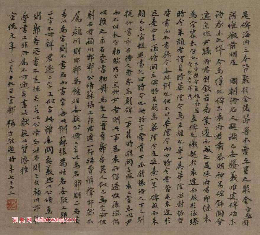 落款:宣統元年三月十九日宜都楊守敬題,時七十又二。