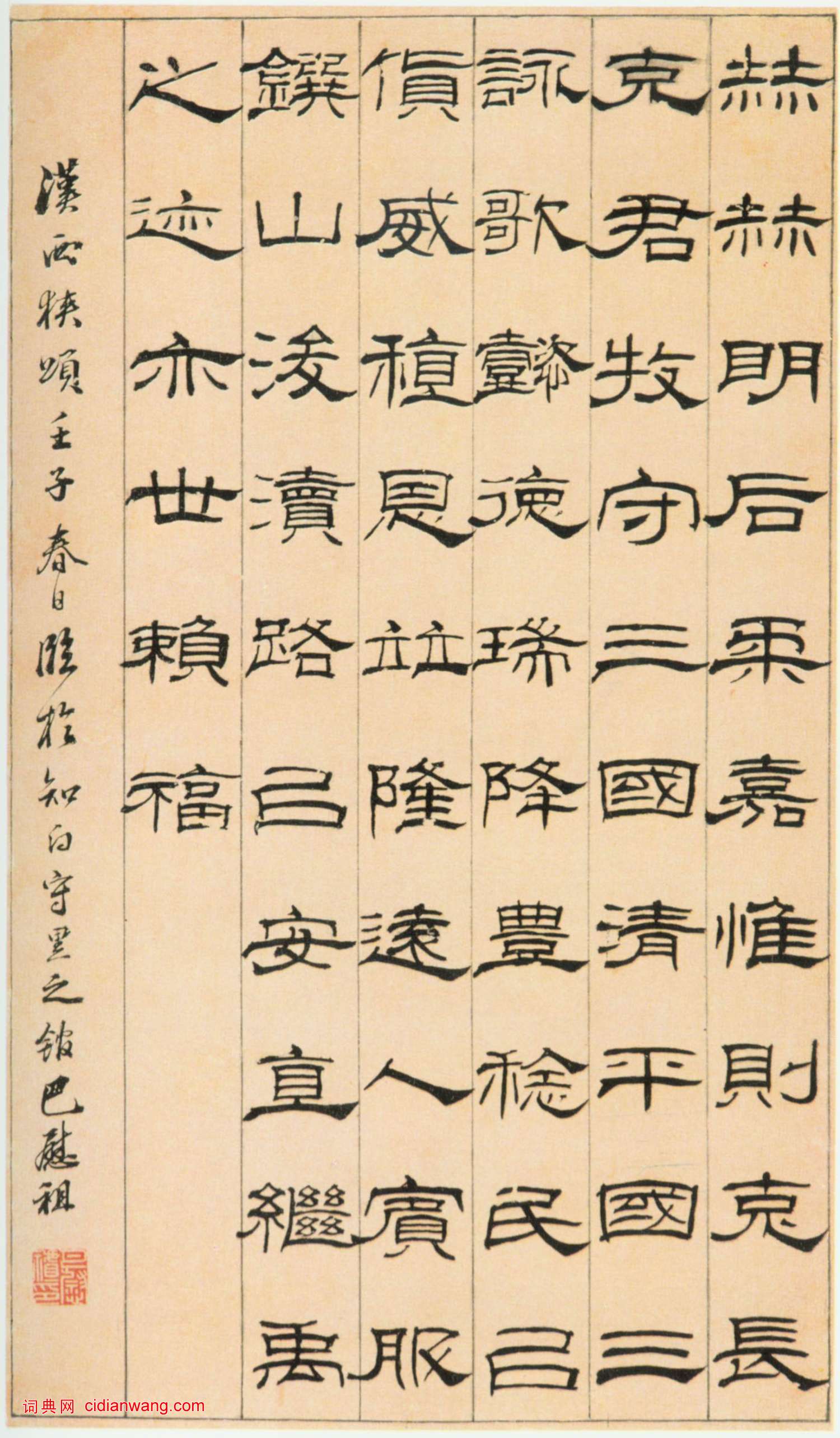 款署:漢西狹頌,壬午春日臨於知白守黑之館。巴慰祖。