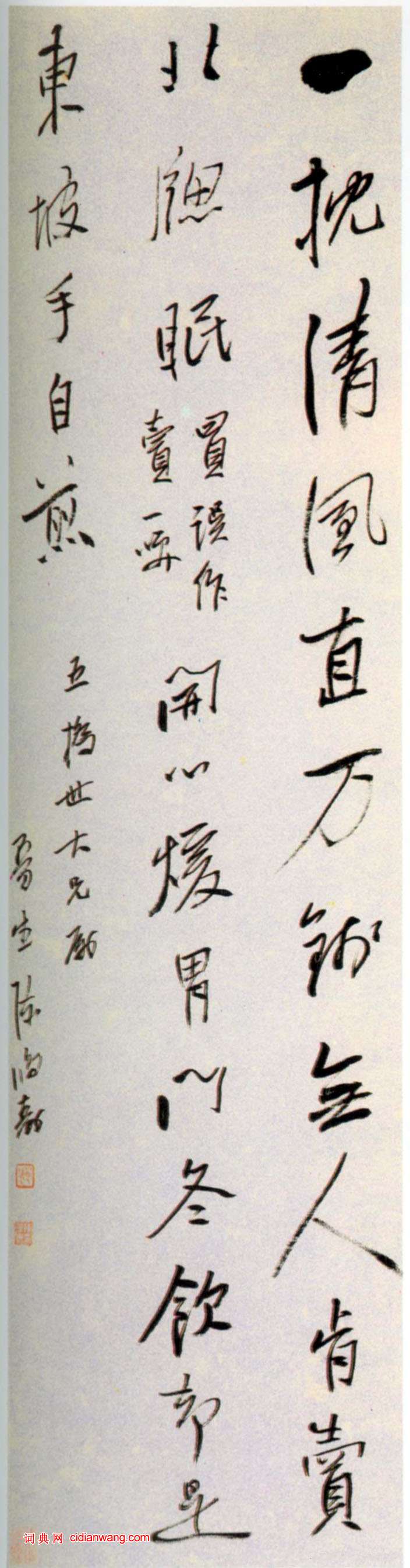 書法欣賞魏晉書法唐朝書法宋朝書法元朝書法明朝書法清朝書法近現代書法字典網>> 歷代書法>> 清朝>> 陳鴻壽行書《蘇軾七言詩軸》正文 陳鴻壽行書《蘇軾七言詩軸》作者:陳鴻壽 書體:行書 陳鴻壽行書詩軸,書蘇軾七言詩《睡起聞米元章冒熱到東園送麥門冬飲子》。釋文:一枕清風直萬錢,無人肯賣(買)北窗眠(買誤作賣,一笑),開心暖胃門冬飲,知是東坡手自煎。2019-2-18 10:21:09 陳鴻壽的相關書法作品:陳鴻壽《隸書五言聯》 陳鴻壽《隸書七言聯》 陳鴻壽《行書七言詩軸》 陳鴻壽隸書《得魚賣畫四言聯》 陳鴻壽行書《彝鼎醴泉七言聯》 陳鴻壽《行書蔡襄精茶帖軸》 陳鴻壽行書《蘇軾七言詩軸》 陳鴻壽·隸書六言聯 相關文章:王羲之蘭亭序,也有“瑕疵”馮承素摹王羲之《蘭亭序》書法家:王羲之《蘭亭序》三個最經典的摹本,分別出自唐代書...米芾《行書建州帖》 (行書)米芾《行書建州帖》 米芾《行書建州帖》,又稱《送陳覺民詩》。凡十五行,共一四一字...王鐸草書《王屋圖詩卷》 (草書)《王屋圖並詩卷》是王鐸所寫著名的草書卷之一,時年56歲,為所畫《王屋山居圖》而書...金琮行草《致士行函》 (行草)金琮《致士行函》,行草, 錢鏡塘先生藏從現行的藝術史來看,金琮(1449~15...文徵明行書《陋室銘》 (行書)明代文徵明行書作品欣賞《陋室銘》紙本,縱57cm,橫31.3cm。故宮博物院藏本...傅堯俞·蒸燠帖 (行楷)傅堯俞《蒸燠帖》,紙本,行楷書,縱26.3厘米,橫17.3厘米。《蒸燠帖》是傅堯...懷素草書《王獻之王洽王珣書評》 (草書)懷素草書《王獻之王洽王珣書評》,拓本釋文:王獻之,字子敬,羲之第七子,官至中書令...彭年《小楷芝壽序斗方》 (小楷)彭年《小楷芝壽序斗方》 紙本 22.3×20.8厘米 山東省博物館藏資料來源:...趙孟頫的手札欣賞 (行書)在趙孟頫傳世的諸多作品中,我最喜歡的,不是他的碑記或題跋,不是他抄的千字文,也不...北魏楷書《崔敬邕墓誌》 (楷書)《崔敬邕墓誌》(費念慈舊藏本) 全稱《魏故持節龍驤將軍督營州諸軍事營州刺史征虜將...