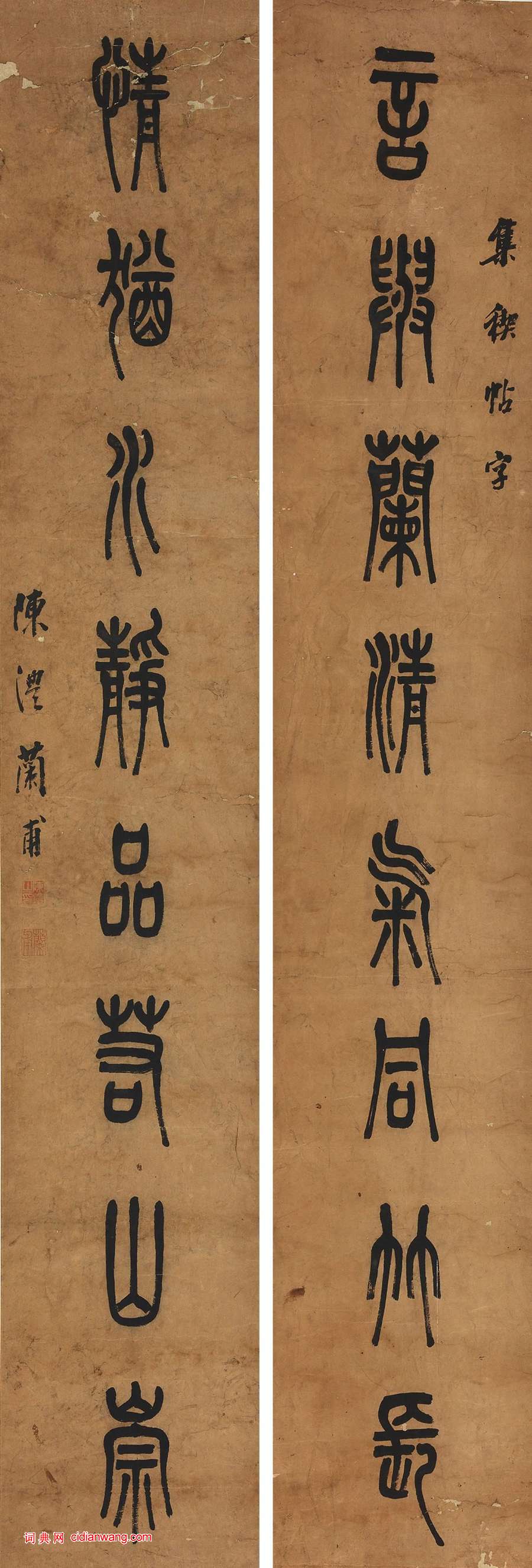 陳澧《篆書言與情猶八言聯》,紙本,篆書,107.2 ×29.8cm ×2, 澳大利亞新南威爾斯州美術館藏。