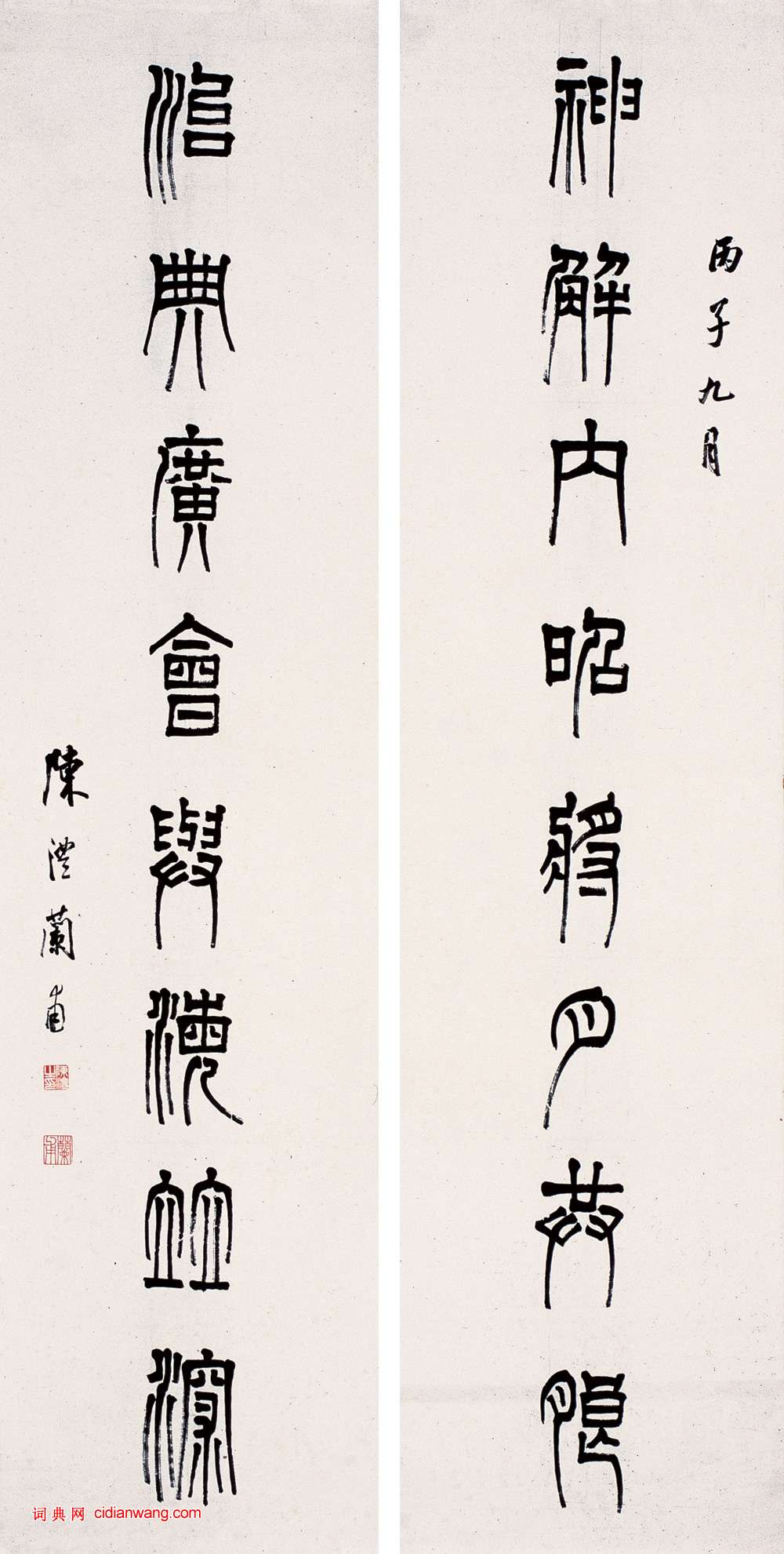題識:神解內昭將月共朗,治典廣會與海並深。丙子九月,陳澧蘭甫。