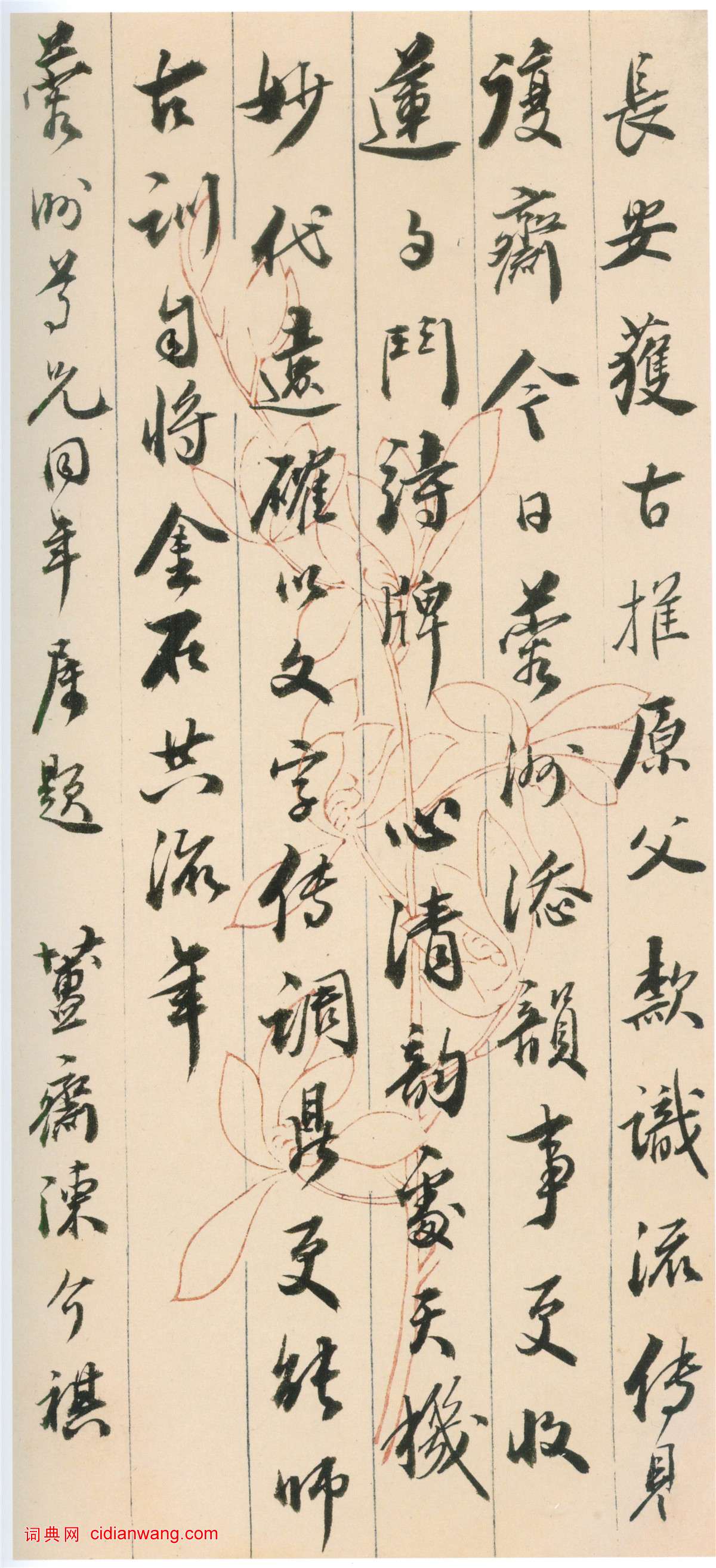 書法欣賞魏晉書法唐朝書法宋朝書法元朝書法明朝書法清朝書法近現代書法字典網>> 歷代書法>> 清朝>> 陳介祺行書《手札冊頁》正文 陳介祺行書《手札冊頁》作者:陳介祺 書體:行書 陳介祺《手札冊頁》,紙本,行書,23.2×10.6cm、23.3×17cm,上海博物館藏。【資料來源】《中國法書全集》18-清-3(文物出版社) 2019-2-23 10:35:05 陳介祺的相關書法作品:陳介祺行書《手札冊頁》 陳介祺《篆書七言聯》 陳介祺 《行書地偏雨冷七言聯》 陳介祺 《篆書好古明至七言聯》 相關文章:王洙《范仲淹神道碑》 (隸書)王洙《范仲淹神道碑》,又稱“褒賢碑”。歐陽修撰文,碑額由宋仁宗親篆“褒賢之碑”四...嚴衍《草書李白詩軸》 (草書)嚴衍《草書李白詩軸》釋文:問余何意棲碧山,笑而不答心自閒。桃花流水杳然去,別有天...王文治《行書七言詩軸》 (行書)王文治《行書七言詩軸》 紙本 縱124厘米 橫38.8厘米 田家英小莽蒼蒼齋藏釋...書法該怎么讀帖?讀貼,拿著古代碑帖讀。有人說“看”帖和“讀”帖一樣,其實完全不然,一字之差,卻相...李鱓·七言題畫詩 (行書)李鱓《七言題畫詩》,行書。文嘉行書《七絕詩軸》 (行書)文嘉行書《七絕詩》軸,紙本,書於明萬曆七年(1579年),文嘉時年79歲,尺寸:...張瑞圖行草《盧照鄰長安古意詩》 (行草)張瑞圖行草《盧照鄰長安古意詩》 ,紙本長卷,尺寸:28.2 X 466.5cm,...李瑞清《楷書虛室清歌五言聯》 (楷書)李瑞清《楷書虛室清歌五言聯》 177×46cm×2 紙本 1919年 上...楊凝式《神仙起居法帖》 (草書)《神仙起居法帖》,五代楊凝式書。紙本,草書。縱27cm,橫21.2cm。草書8行...費宏《行書尺牘》 (行書)費宏《行書尺牘》 釋文:契末費宏頓首 大廷尉葛老大人先生舊契 六別無由奉 晤相士...