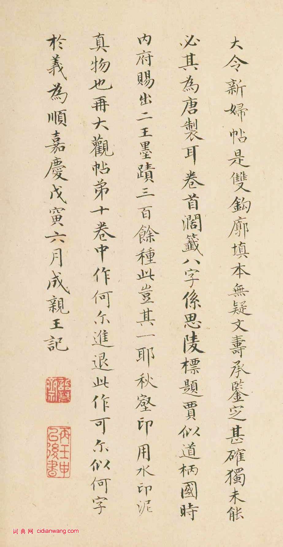 成親王《跋王獻之新婦地黃湯帖》,小楷,書於清嘉慶戊寅年(1818)。