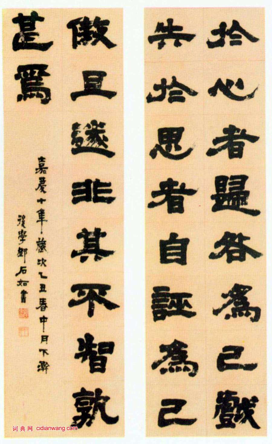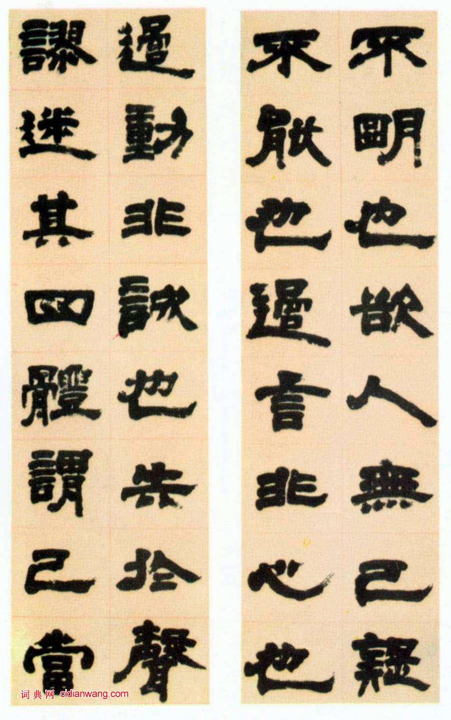 書法欣賞魏晉書法唐朝書法宋朝書法元朝書法明朝書法清朝書法近現代書法字典網>> 歷代書法>> 清朝>> 鄧石如隸書《東銘八條屏》(2)正文 鄧石如隸書《東銘八條屏》(2)作者:鄧石如 書體:隸書 首 頁 上一頁 1 2 全文2019-3-7 10:15:26 鄧石如的相關書法作品:鄧石如《楷書詩軸》 鄧石如《行草詩軸》 鄧石如《隸書五律》 鄧石如篆書《荀子宥坐篇軸》 鄧石如《四體書冊》 鄧石如篆書《心經》 鄧石如隸書《東銘八條屏》 鄧石如隸書《文心雕龍·正緯軸》 鄧石如《隸書新洲詩軸》 相關文章:吳大澂《行書手札》 (行書)《行書手札》紙本行書 28.2×16.3cm 上海博物館藏此行書手札,通篇遣筆...于右任《草書江山風雨五言聯》 (草書)于右任《草書江山風雨五言聯》紙本草書 182×39.5cm 台北故宮博物院藏 ...文徵明《行書五言詩軸》 (行書)文徵明行書五言詩軸 見於中國嘉德國際拍賣有限公司2005春季拍賣會中國古代書畫專...王鳳靈·跋趙令穰《湖莊清夏圖卷》 (行書)王鳳靈跋趙令穰《湖莊清夏圖卷》,行書,縱19.1cm。波士頓美術館藏。皇甫沖·題唐寅《金昌送別圖》詩 (行書)【釋文】春日送忍齋母舅先生招游虎丘,漫賦。名山叨勝分,軒盡喜返趨。盤送黃金饌,醪...篆刻“六補”是什麼意思【導讀】作為藝術的構成因素章法、字法、筆法和刀法不是那么能機械的分開的,往往是相...歐體九成宮標準習字帖 (不詳)臨摹碑帖注意事項(溥慶)1.習字要有計畫,尤須持之以恆。每天須有一定時間學習。臨...董其昌《五絕詩軸》 (行書)董其昌《五絕詩軸》,紙本,行書,縱77.5cm,橫31.1cm。南京博物院藏。吳雯《行書過河上道院五言詩軸》 (行書)吳雯《行書過河上道院五言詩軸》紙本行書 149.2×46.6cm 湖南省博物館...張瑞圖《行書六言聯句》 (行書)張瑞圖《行書六言聯句》軸 紙本 356×99厘米 年代不詳 榮寶齋藏釋文:修竹...