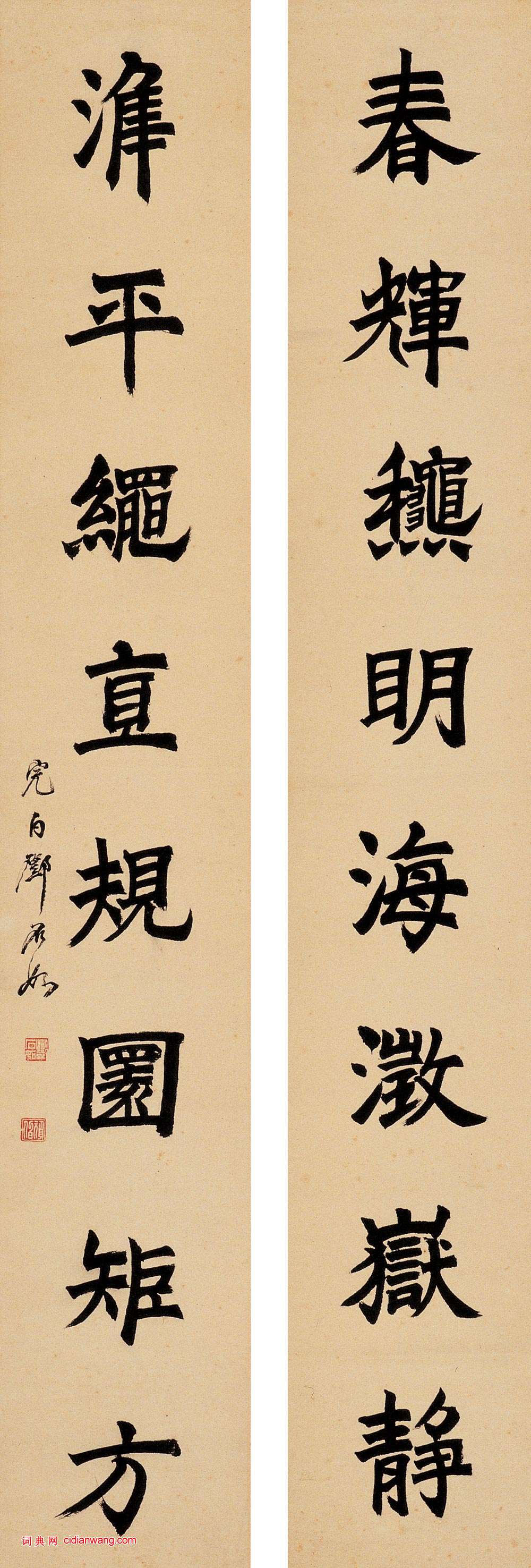 鄧石如《楷書八言聯》立軸, 紙本,126.5×20.5cm×2,中國嘉德 2006秋季拍賣會食筍齋珍藏中國書法。