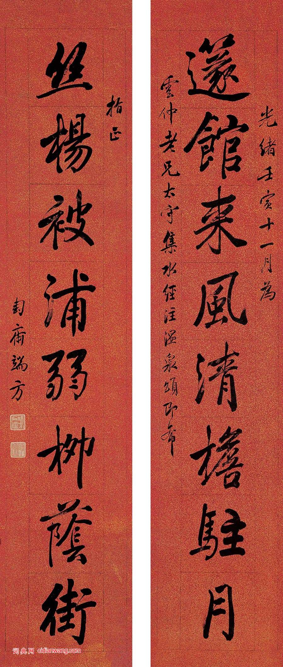 端方《行書八言聯》,水墨紙本,196×39.5cm×2,清光緒壬寅(1902年)作。