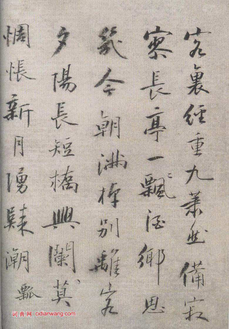 客里經重九,蕭然備寂寥。長亭一(飄)(瓢)酒,鄉思幾今朝?滿棹別離客,夕陽長短橋。興闌莫惆悵,新月涌歸潮。