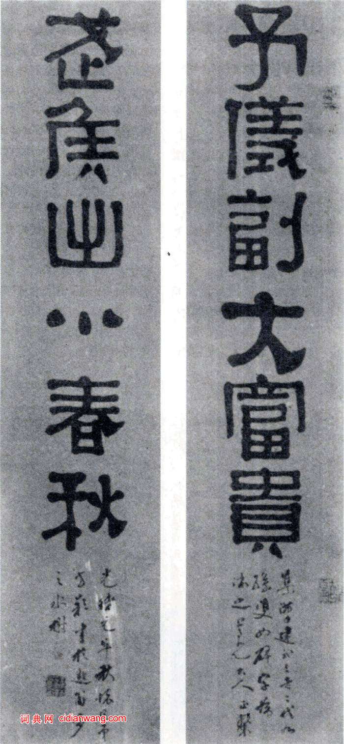 吳昌碩 《行書獨鶴赤鯉七言聯》紙本行書 155×30cm×2 1906年 朵...