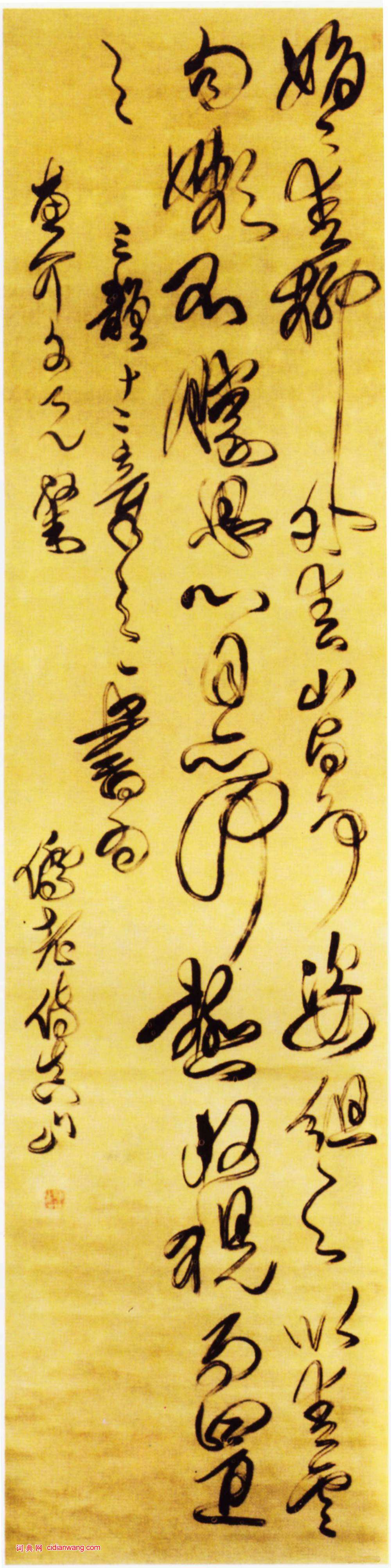 傅山《草書五言古詩立軸》 ,綾本,縱201.5cm,寬50.9cm, 北京故宮博物院藏。