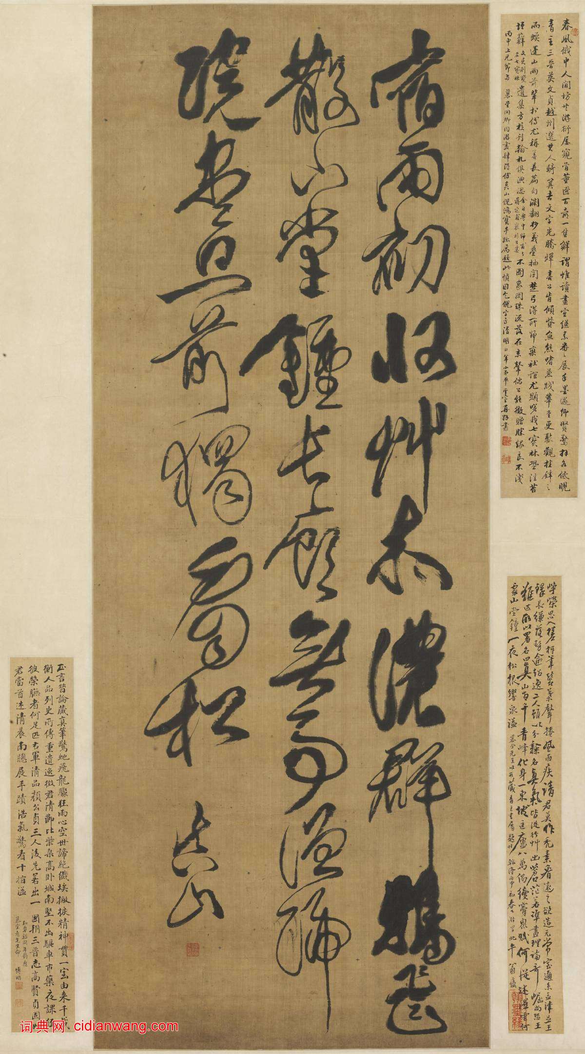 傅山《草書七絕詩》軸,清,絹本,草書,縱126.5cm,橫48.3cm,北京故宮博物院藏。