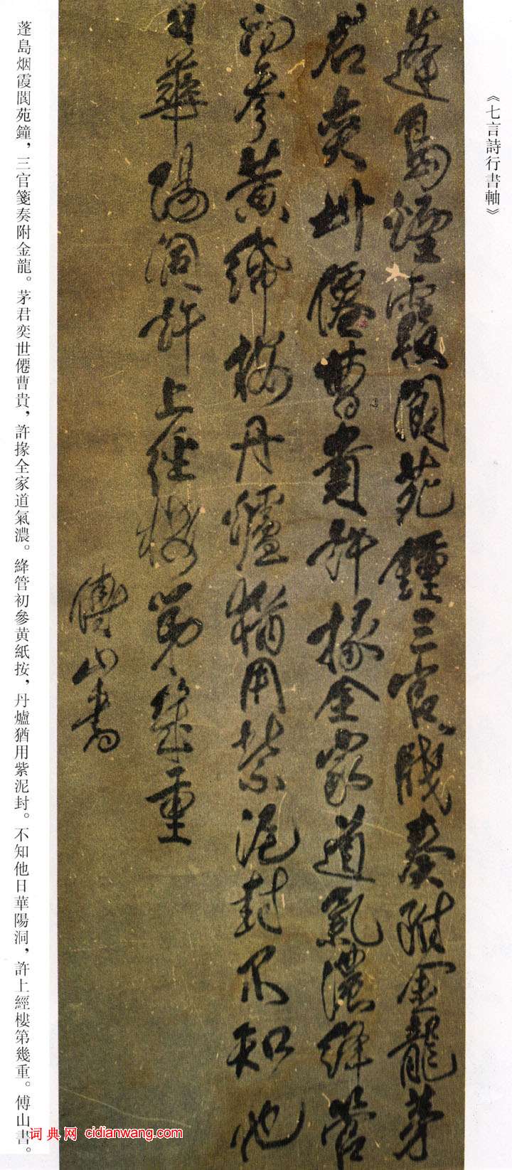 傅山《七言詩行書軸》 ,錄唐朝詩人李商隱的七言詩《鄭州獻從叔舍人褎》。