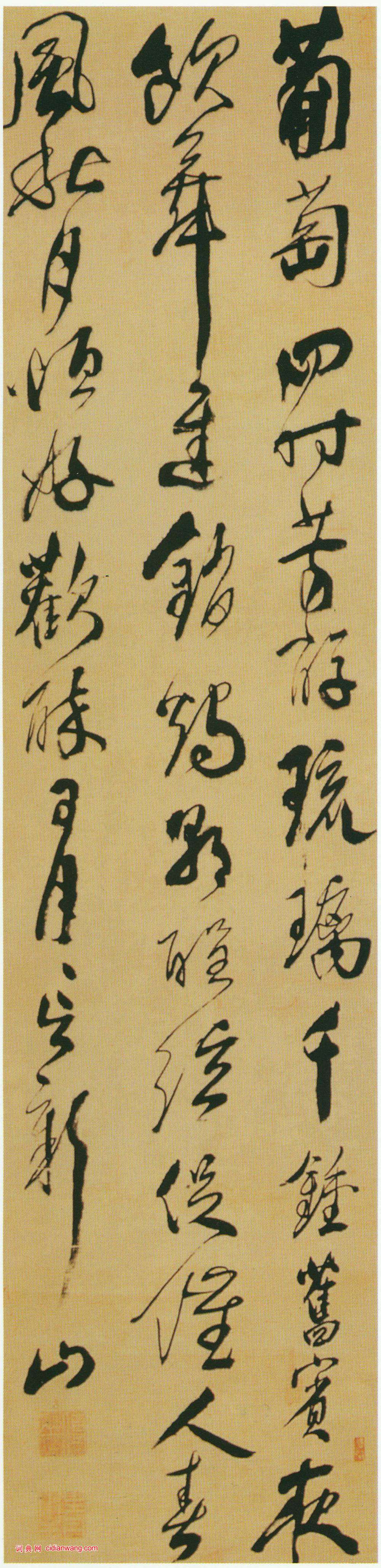 傅山行書《陸機六言詩軸》, 絹本, 177×42厘米, 朵雲軒藏。
