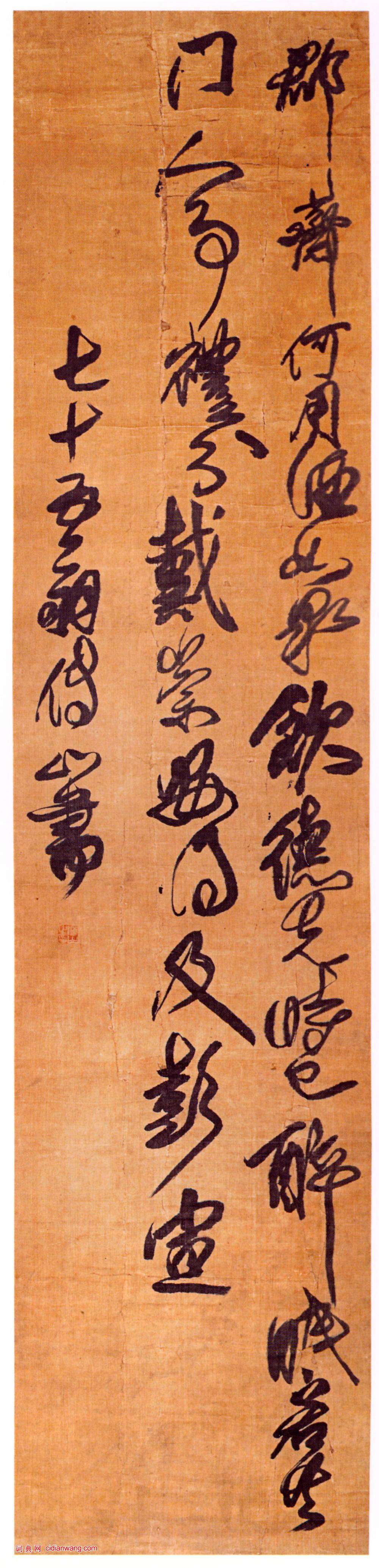傅山 《行草李商隱華州周大夫宴席詩》軸, 絹本, 198cm×46cm ,山西省博物院藏。