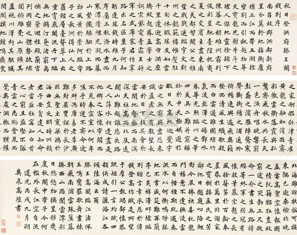 高塏《楷書滕王閣序》,紙本,楷書, 32×371cm, 書於清道光六年(丙戌,1826年), 北京傳是 2010年秋季拍賣會 。
