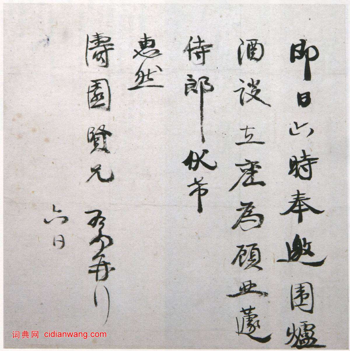 即日六時,奉邀圍爐,酒設立座,為顧亞蘧侍郎伏希惠然。濤國賢兄。有為再拜。六日。