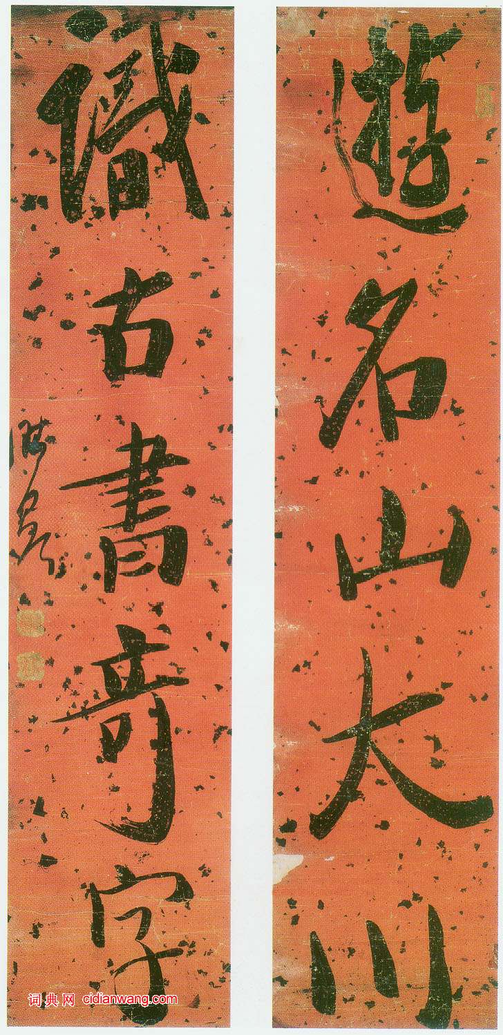 資源下載魏晉書法唐朝書法宋朝書法元朝書法明朝書法清朝書法近現代書法字典網>> 歷代書法>> 清朝>> 龔晴皋《楷書五言聯》正文 龔晴皋《楷書五言聯》作者:龔晴皋 書體:楷書 龔晴皋楷書五言聯,126X27cm。釋文:游名山大川,識古書奇字。圖片掃描自重慶出版社《中國歷代書風系列——龔晴皋書風》(王川平編)2019-5-11 17:26:20 龔晴皋的相關書法作品:龔晴皋行書伯榖軸 龔晴皋《行書春夢詩軸》 龔晴皋《行書雨邊竹里軸》 龔晴皋《行書五言聯》 龔晴皋行書軸 龔晴皋行書軸 龔晴皋行書《張華王充七言聯》 龔晴皋行書《閒憑欲下七言聯》 龔晴皋行書《夕陽空翠五言聯》 相關文章:高啟《題仕女圖詩》 (行楷)高啟《題仕女圖詩》,紙本,行楷書,縱25.9厘米,橫43.4厘米。北京故宮博物院...張雨行書《上閒止詩卷》 (行書)張雨《上閒止詩卷》紙本 29.4×41.6cm 至正九年(1349) 台北故...張瑞圖《草書沈佺期岳館五言詩》 (草書)張瑞圖《草書沈佺期岳館五言詩》扇面 台北故宮博物院藏張瑞圖書法多以側鋒起筆,轉折...“南董北王”王鐸書法 (行草)【導讀】他的書法獨具特色,用筆出規入矩,張弛有度,流轉自如,力道千鈞,擅長行草,...虞允文·適造帖 (行書)【釋文】允文適造見尋辱訪別樂處既久數千里分攜可量此心愴惻也蜀墨二種久所秘愛春秋篡...趙之謙《隸書負舟絜宇五言聯》 (隸書)趙之謙《隸書負舟絜宇五言聯》紙本隸書 98.5×25.5cm 浙江省博物館藏 ...東漢《夏承碑》民國石印本 (隸書)《夏承碑》民國石印本 濟南市圖書館藏此碑全稱《漢北海淳于長夏承碑》,又名《夏仲兗...米芾《彥和帖》 (行草)【釋文】芾頓首啟。經宿。 尊候沖勝。山試 納文府。且看芭山。暫 給一視其背。即定...李陽冰篆書《三墳碑》 (篆書)日本早稻田文庫--唐代李陽冰篆書鐵線描《三墳記碑》,唐李季卿撰文,李陽冰篆書代表...袁宏道《草書詩扇頁》 (草書)袁宏道《草書詩扇頁》,金箋,紙本,草書,尺寸: 16×50cm, 天津博物館藏...