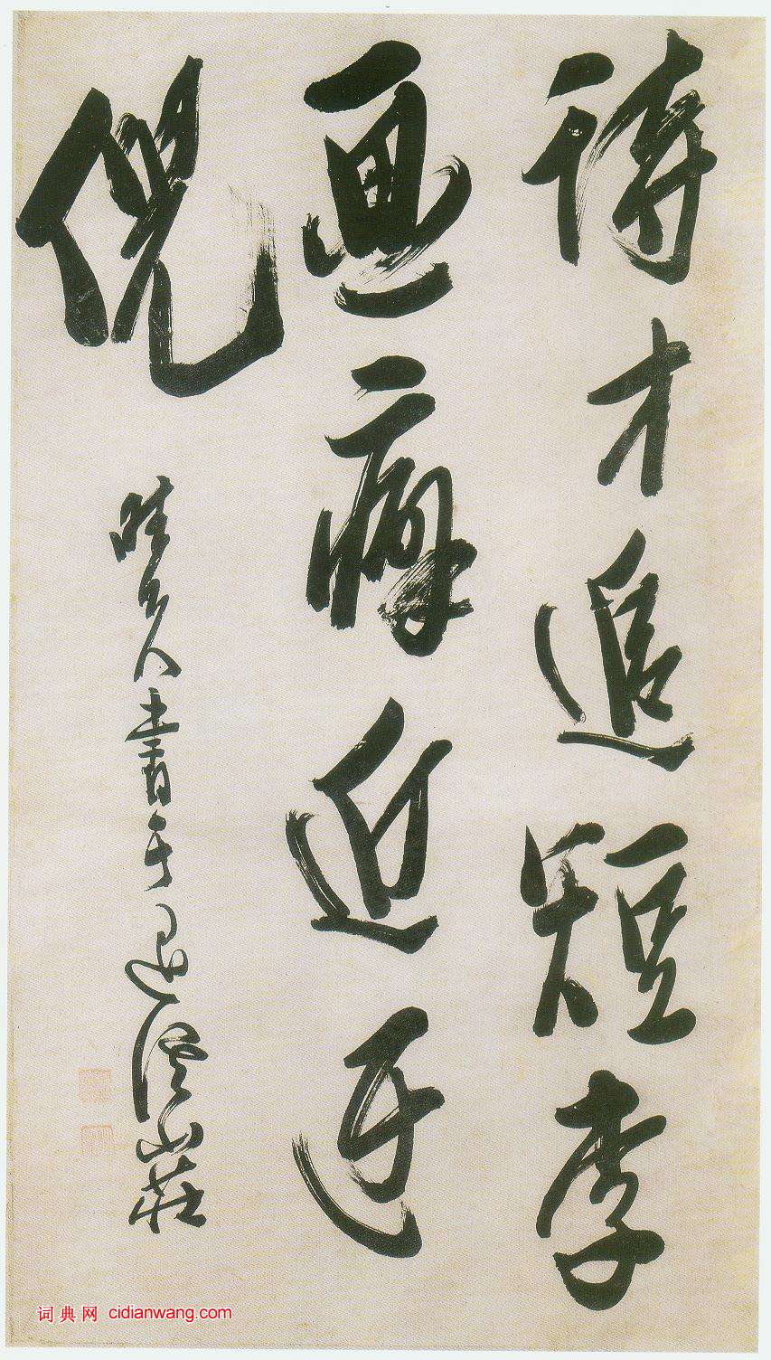 資源下載魏晉書法唐朝書法宋朝書法元朝書法明朝書法清朝書法近現代書法字典網>> 歷代書法>> 清朝>> 龔晴皋行書軸正文 龔晴皋行書軸作者:龔晴皋 書體:行書 龔晴皋行書軸 ,187X59cm。釋文:詩才追短李畫病近倪。圖片掃描自重慶出版社《中國歷代書風系列——龔晴皋書風》(王川平編)2019-5-11 17:44:57 龔晴皋的相關書法作品:龔晴皋《行書雨邊竹里軸》 龔晴皋行書《山下水邊七言聯》 龔晴皋行書軸 龔晴皋《楷書五言聯》 龔晴皋行書《羨馬為憐軸》 龔晴皋行書《閒憑欲下七言聯》 龔晴皋《行書五言聯》 龔晴皋行書《張華王充七言聯》 龔晴皋楷書《畫前刪後五言聯》 相關文章:周天球《草書觀象台作七律詩扇》 (草書)周天球《草書“觀象台作”七律詩扇》(傳) 紙本金箋草書 17.5×54.0cm...蔡襄行書《遠蒙帖》 (隸書)尺牘《遠蒙帖》1061 紙本 28.6cm X28.6 cm 台北故宮博物院藏釋...蘇過楷書《贈遠夫詩帖》 (楷書)蘇過《贈遠夫詩帖》約1123年(宣和五年)紙本, 31.6cmX41.5cm 台...王岩叟行書《與知府安撫左丞資政札》 (行書)王岩叟《與知府安撫左丞資政札》行書.紙本 台北故宮博物院藏釋文:岩叟頓首啟 闊遠...趙孟頫行書《與山巨源絕交書》 (行書)趙孟頫《與山巨源絕交書》(1319) 綠絹本 21.8x254.7cm 北京故宮...趙孟頫《吳興賦》 (行書)趙孟頫墨跡《吳興賦》,手卷,絹本,縱25.2、橫282.3厘米,首題“吳興賦”,...傅山草書《節錄杜甫五律詩軸》 (草書)傅山草書《五律詩軸》,節錄杜甫五言詩《陪鄭廣文游何將軍山林》釋文:床上書連屋,階...米芾墨跡十三帖 故宮珍藏! (行書)1、米芾《陳攬帖》(昨日帖)紙本 行書 縱25.9厘米 橫20.8厘米台北故宮博...于右任《行書稟生賦正五言聯》 (行書)于右任《行書稟生賦正五言聯》紙本行書 131.4×31.8cm 台北故宮博物院...黃庭堅行書《酺池寺詩》 (行書)黃庭堅行書《酺池寺詩》小黠大痴螳捕蟬。有餘不足夔憐蚿。退食歸來北窗夢。一江春月趁...