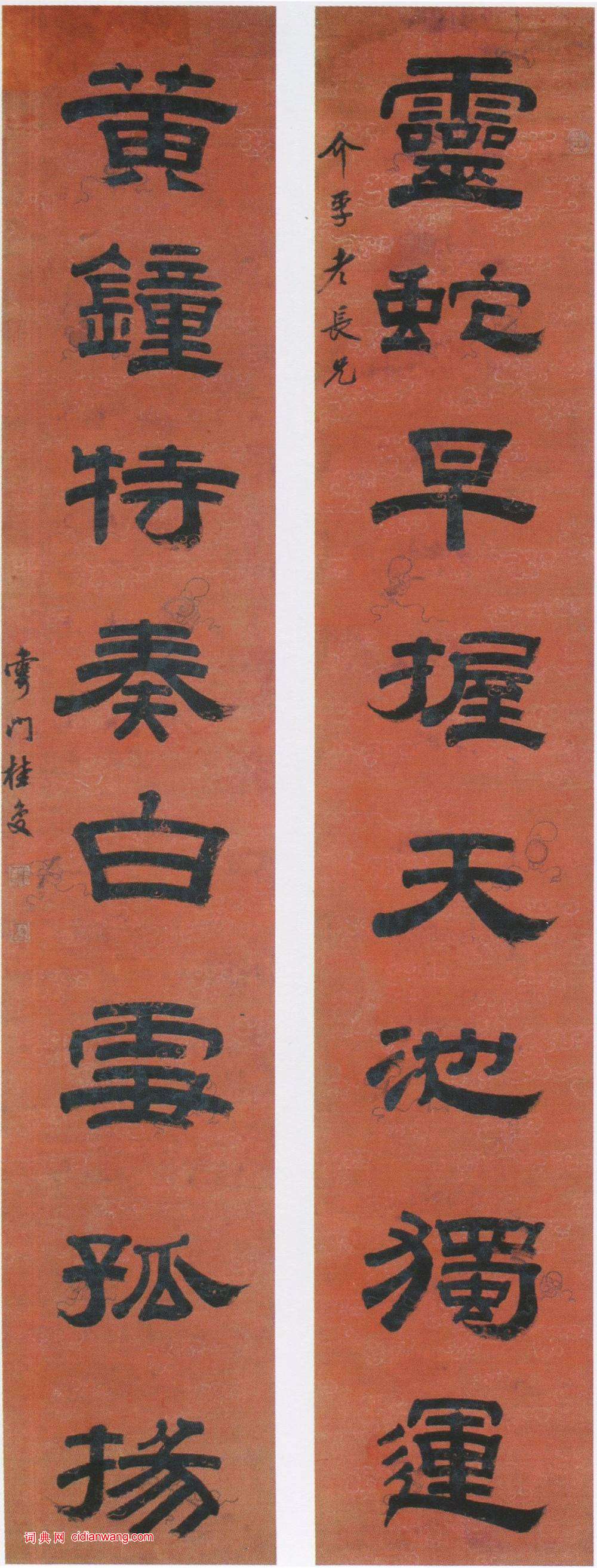 桂馥《隸書靈蛇黃鐘八言聯》 ,紙本,隸書, 164×30cm×2 ,淮安市博物館藏。